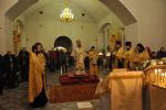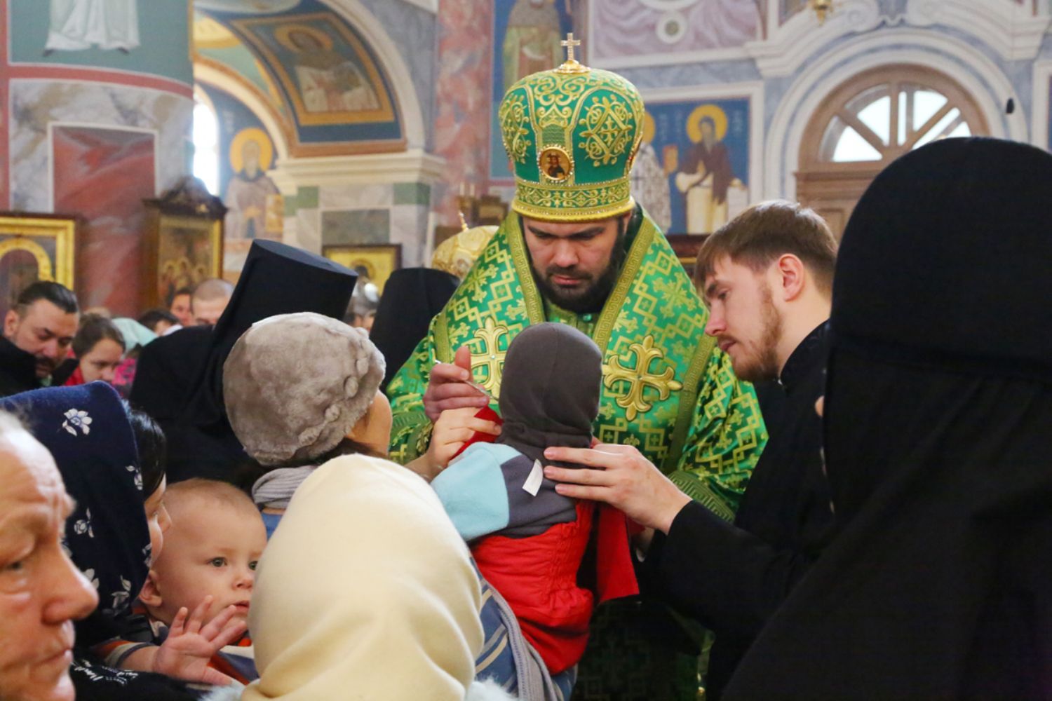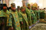 Владыке сослужили: секретарь Епархиального управления иеромонах Серафим (Пасанаев), настоятель храма протоиерей Александр Бачурин и клирики храма: иереи Константин Домрачев и Виктор Умрихин.