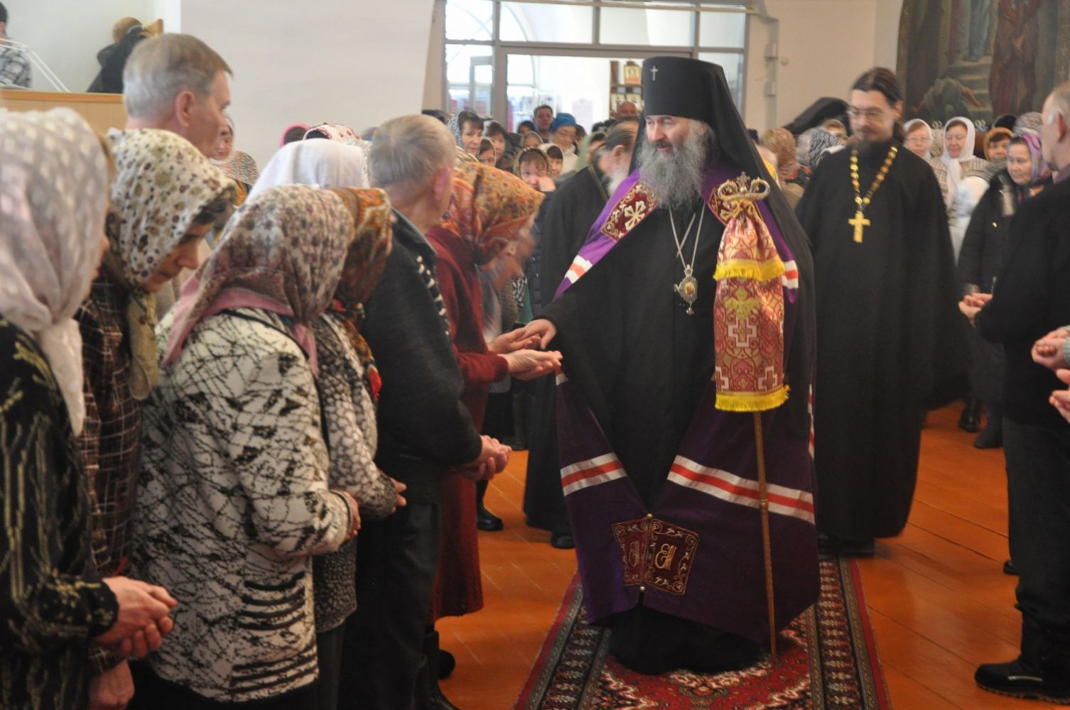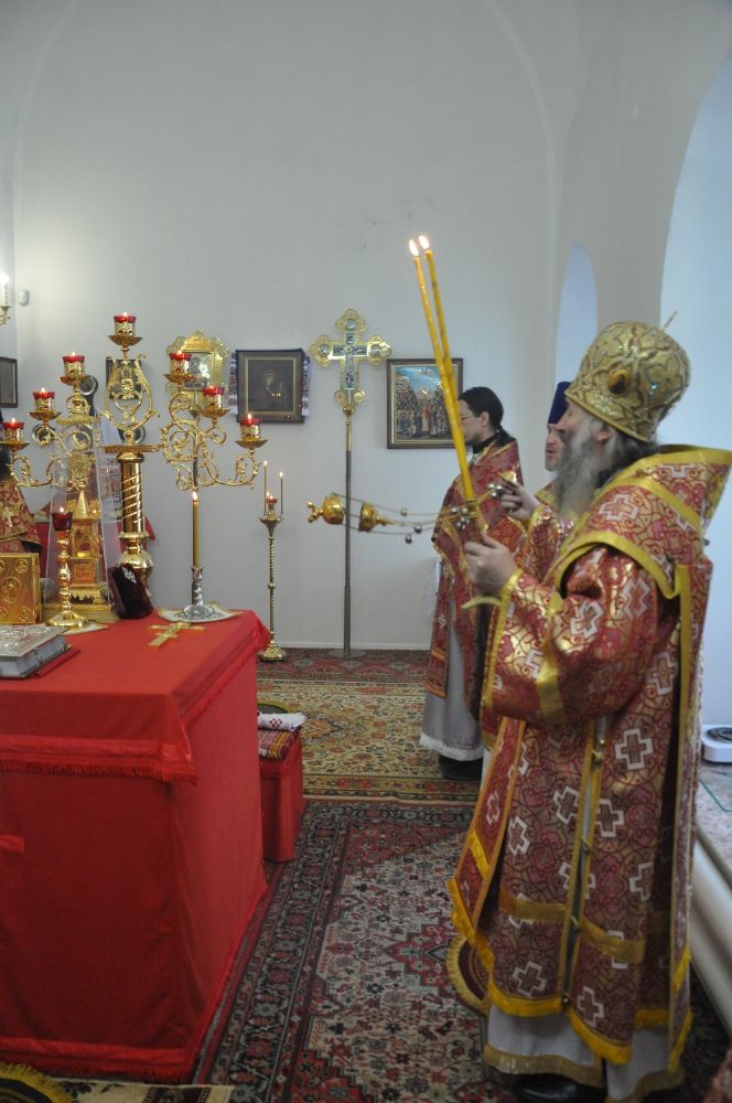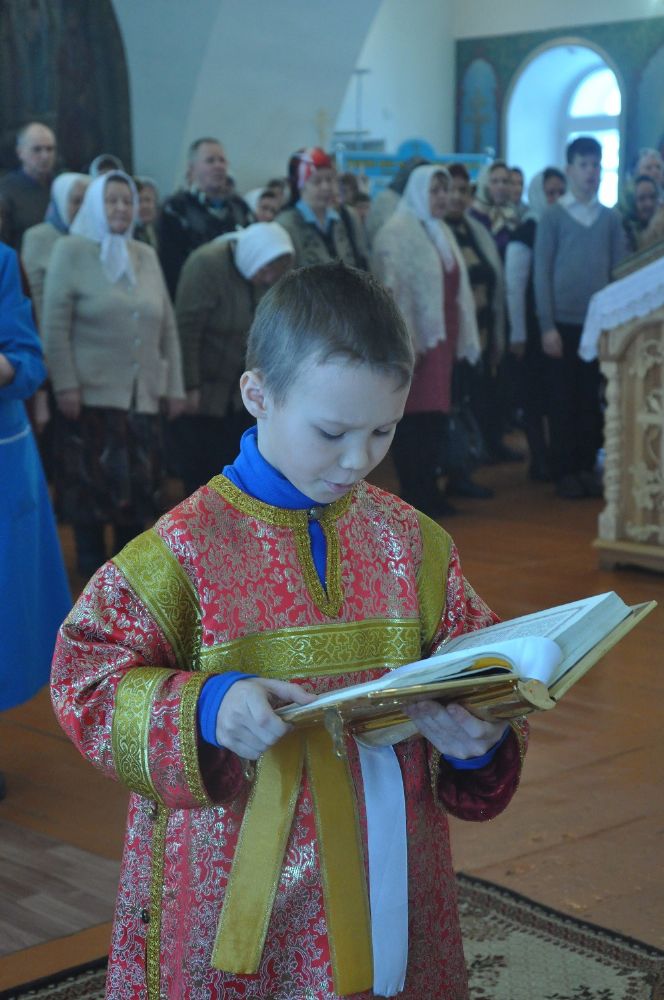 Владыке сослужили: настоятель храма иерей Димитрий Вылекжанин, настоятель храма Покрова Пресвятой Богородицы с. Упша протоиерей Михаил Нехорошков, настоятель храма иконы Божией Матери «Державная» п. Медведево протоиерей Алексий Михайлов и настоятель храма Сретения Господня иерей Алексий Вязов.