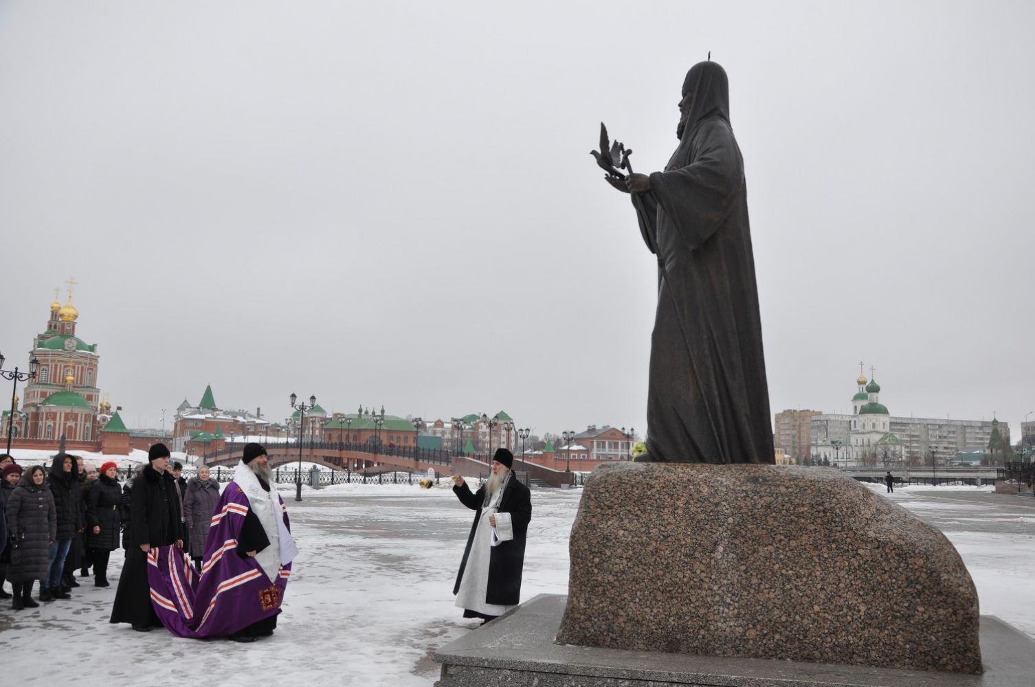 В этот день, 25 февраля, праздновал свой день Ангела почивший Патриарх Московский и всея Руси Алексий II. И уже по традиции после Божественной литургии в домовом храме Епархиального управления Владыка Иоанн совершил панихиду, а затем заупокойную литию на Патриаршей площади г. Йошкар-Олы перед памятником приснопамятному Патриарху Алексию II.