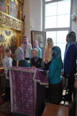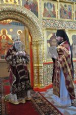 Владыке сослужили: секретарь Епархиального управления иеромонах Серафим (Пасанаев), настоятель храма протоиерей Александр Бачурин и клирик храма иерей Николай Бабич. За богослужением пел хор храма преподобного Серафима Саровского под управлением регента Елены Умрихиной и хор учащихся воскресной школы.