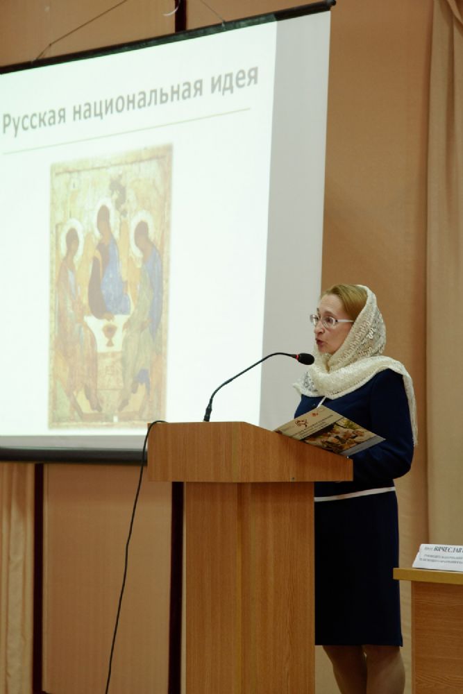 С докладом «Нормативно-правовые и цивилизационные основы взаимодействия Церкви и общества в обеспечении духовной безопасности России» выступила Наталья Скурская, преподаватель Российского государственного педагогического университета им. Герцена (Санкт-Петербург).