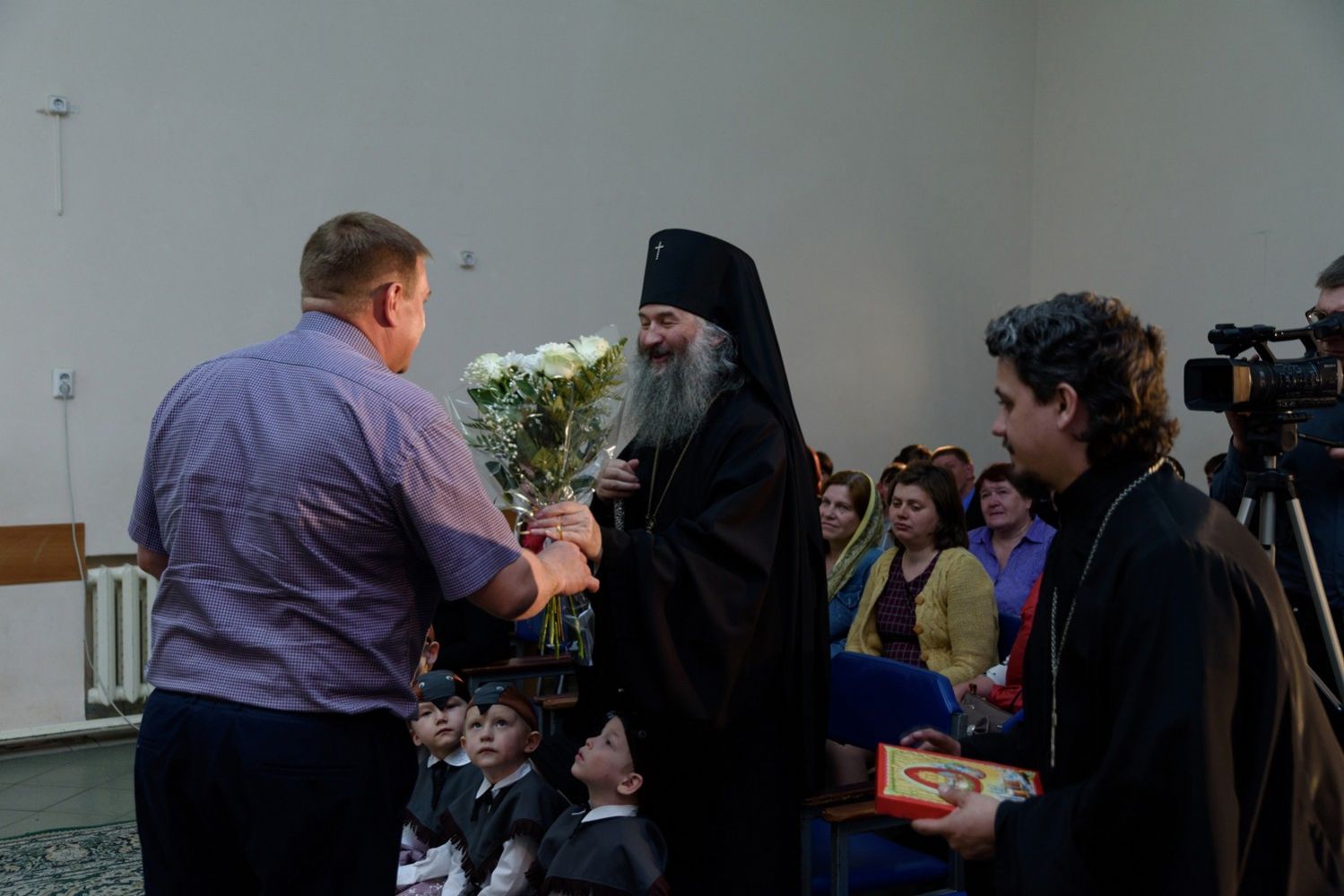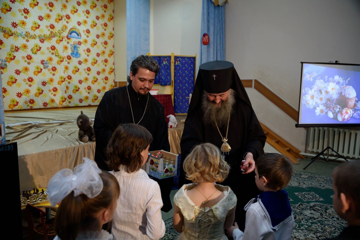 Ребята приветствовали архипастыря радостным: «Христос Воскресе». А в актовом зале преподаватели и воспитанники порадовали всех своим выступлением: пасхальным песнопением, сценками, стихами. Владыка обратился к собравшимся с пастырским наставлением, поздравил всех с Пасхой Христовой и подарил каждому пасхальное шоколадное яйцо.