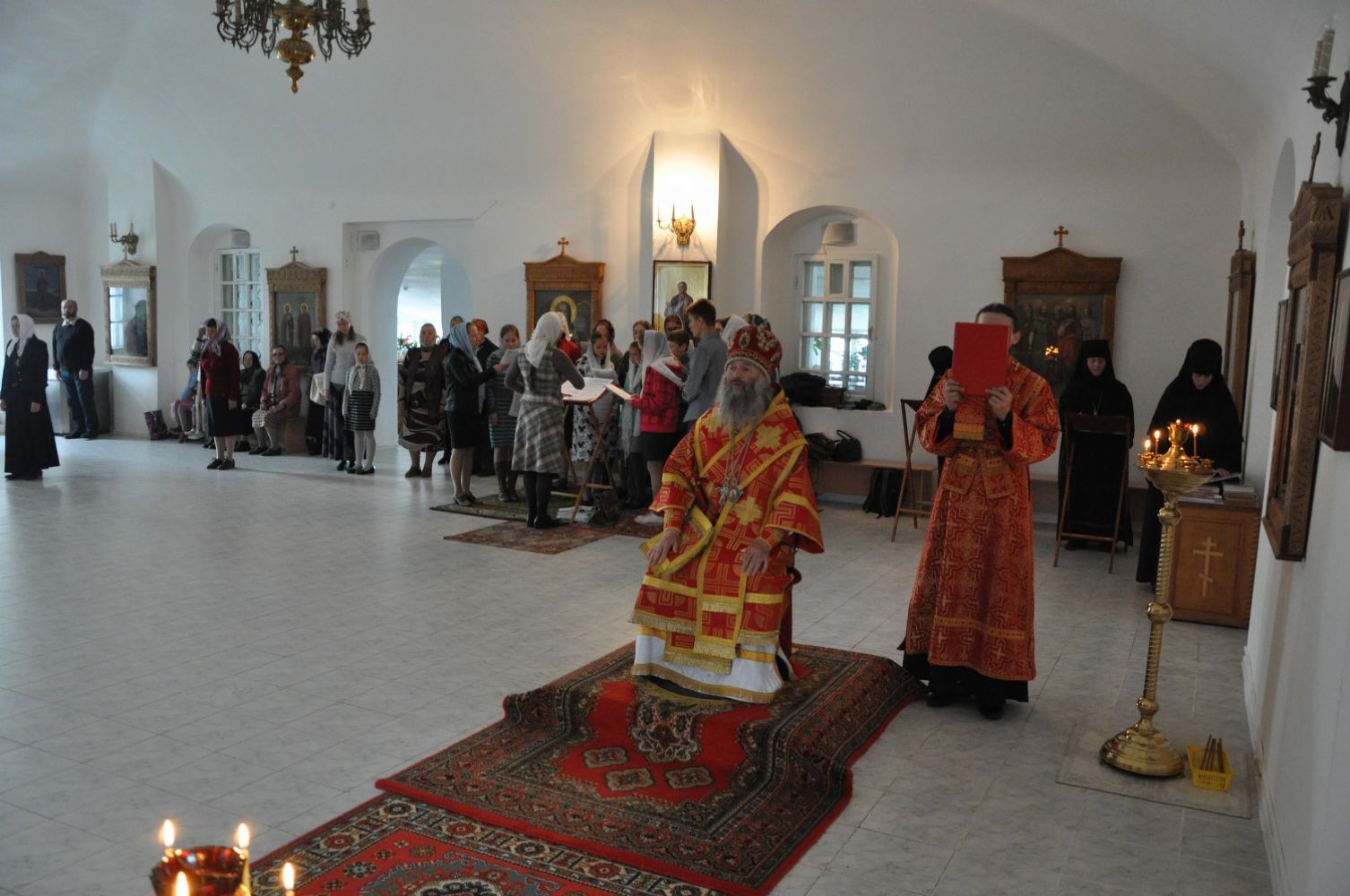 Владыке сослужили: клирик монастыря иерей Михаил Лежнин и настоятель храма Покрова Пресвятой Богородицы с. Чкарино протоиерей Валентин Пылаев.
