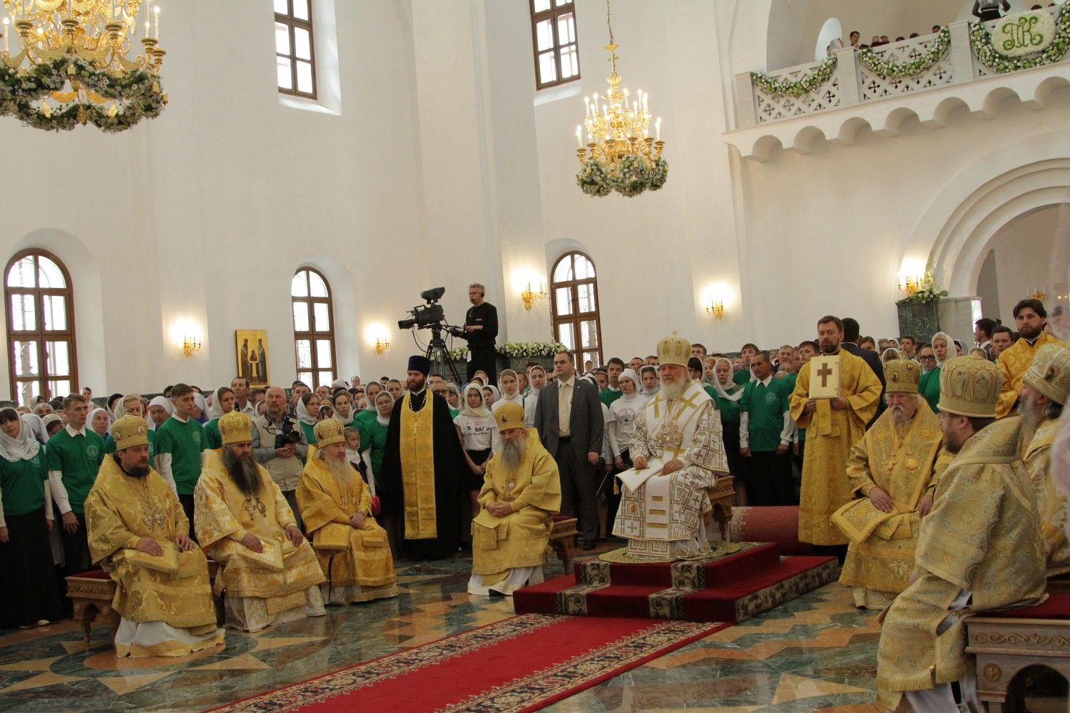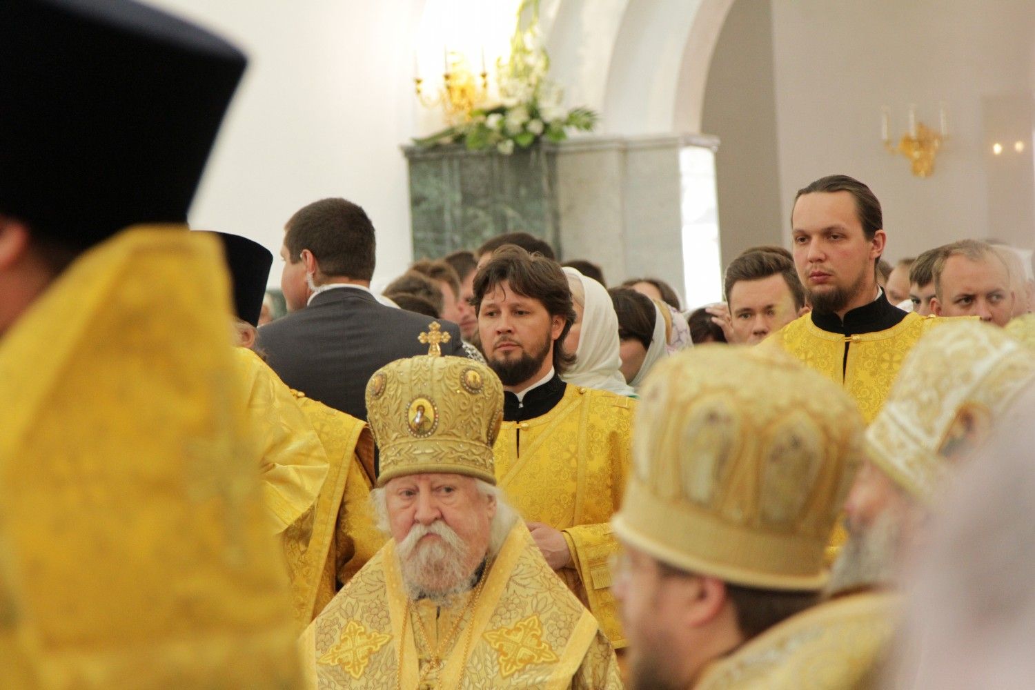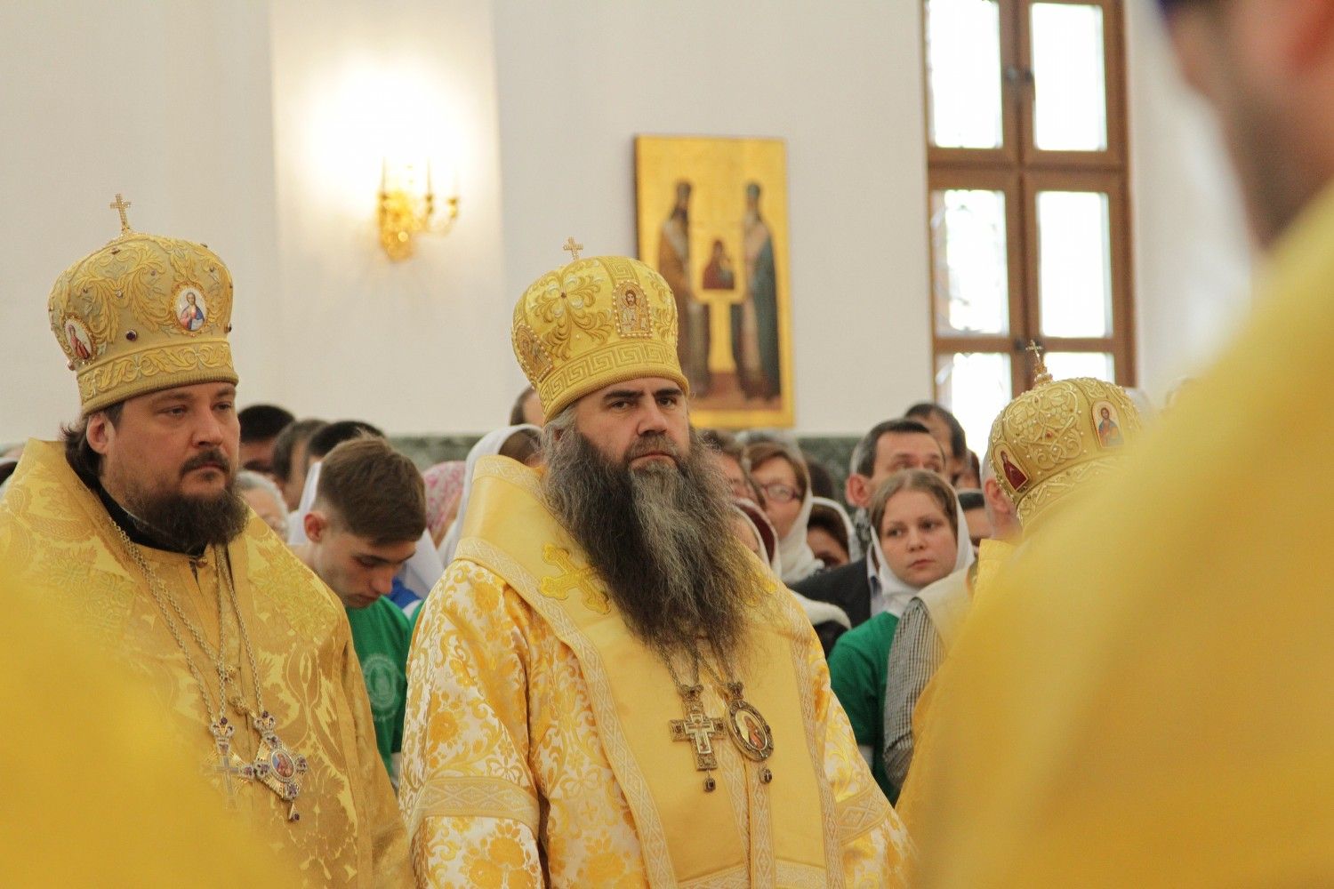 Его Святейшеству сослужили: митрополит Санкт-Петербургский и Ладожский Варсонофий, управляющий делами Московской Патриархии, митрополит Чебоксарский и Чувашский Варнава, митрополит Вятский и Слободской Марк, митрополит Казанский и Татарстанский Феофан, митрополит Нижегородский и Арзамасский Георгий, архиепископ Йошкар-Олинский и Марийский Иоанн, епископ Солнечногорский Сергий, руководитель секретариата Московской Патриархии, епископ Яранский и Лузский Паисий и духовенство Йошкар-Олинской и Марийской епархии.