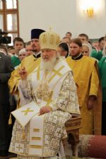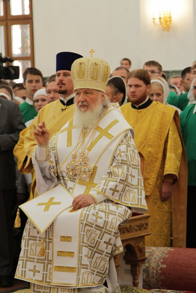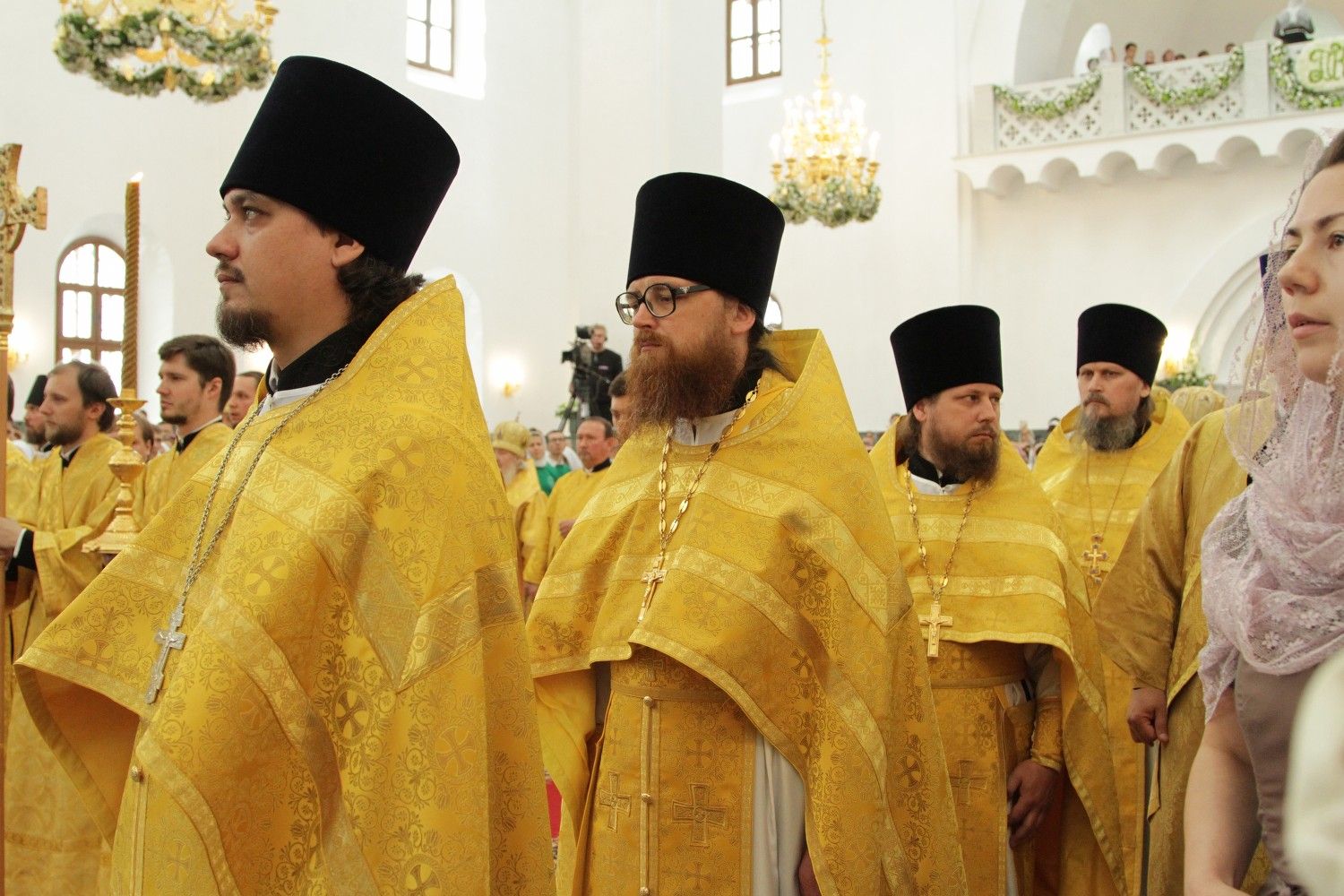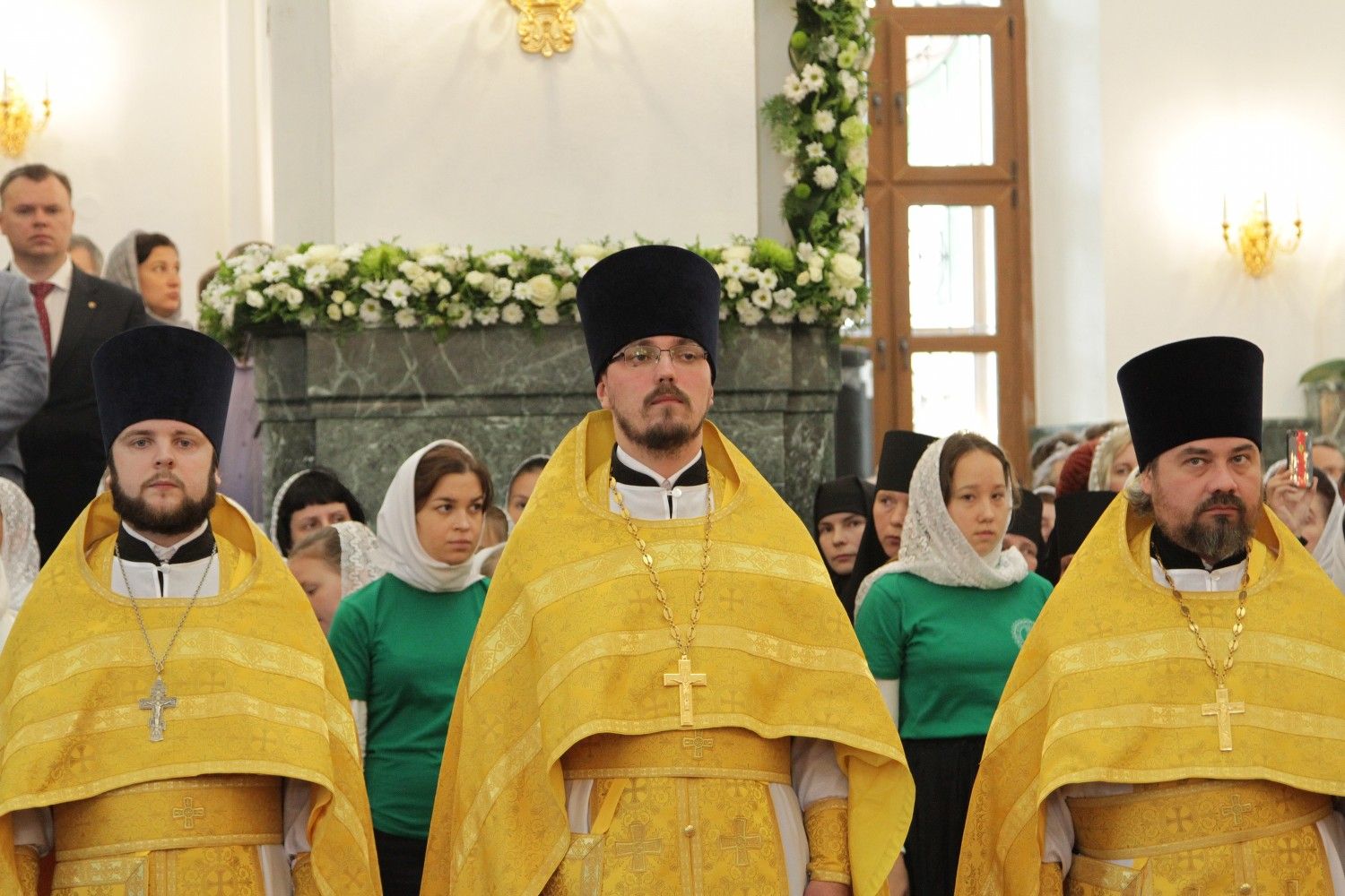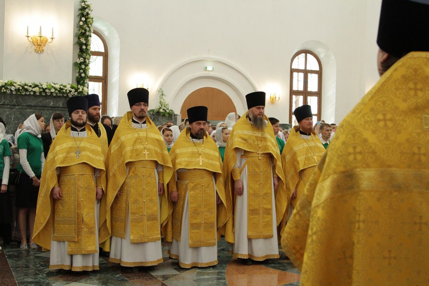 Его Святейшеству сослужили: митрополит Санкт-Петербургский и Ладожский Варсонофий, управляющий делами Московской Патриархии, митрополит Чебоксарский и Чувашский Варнава, митрополит Вятский и Слободской Марк, митрополит Казанский и Татарстанский Феофан, митрополит Нижегородский и Арзамасский Георгий, архиепископ Йошкар-Олинский и Марийский Иоанн, епископ Солнечногорский Сергий, руководитель секретариата Московской Патриархии, епископ Яранский и Лузский Паисий и духовенство Йошкар-Олинской и Марийской епархии.