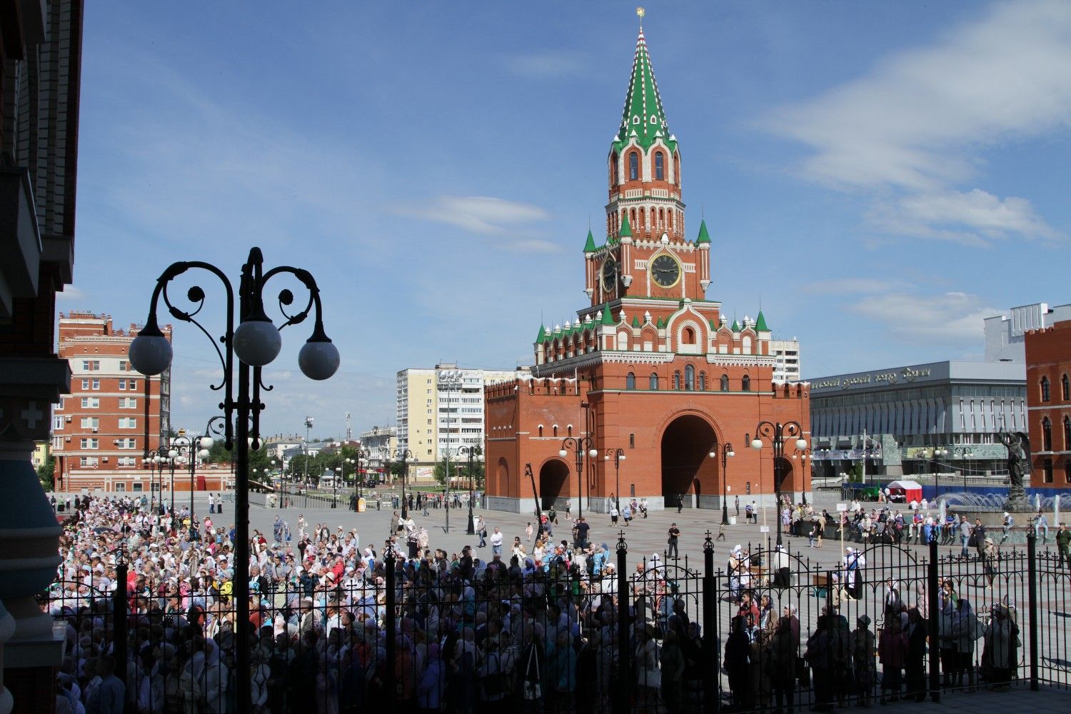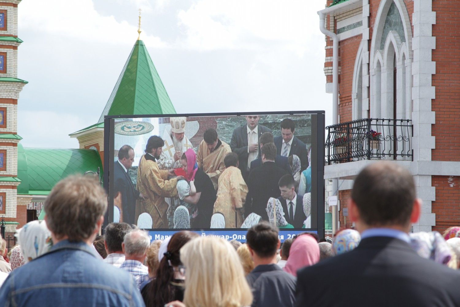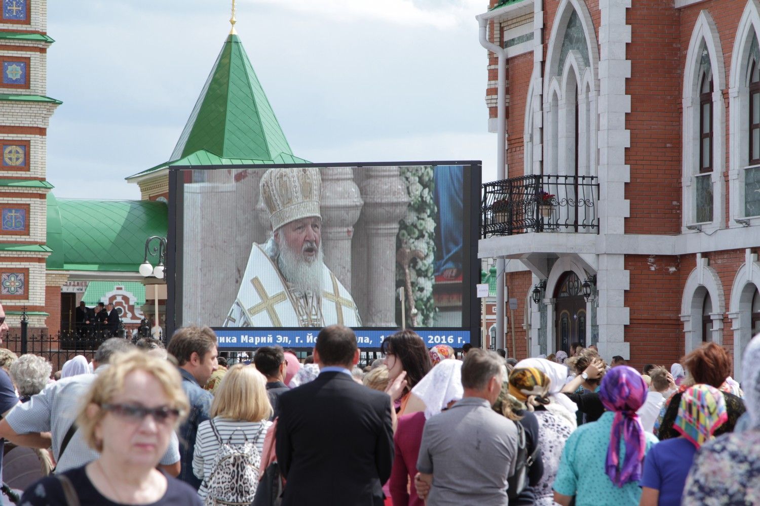 Храм не смог вместить всех пришедших на Патриаршее Богослужение жителей Марий Эл и гостей Республики. Значительное количество верующих молились на улице, наблюдая за Богослужением в режиме онлайн на экране, установленном на площади Пресвятой Девы Марии. Прямая трансляция богослужения также шла на православный ТК «Союз», а интернет трансляция проходила на сайте «МариМедиа».