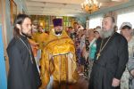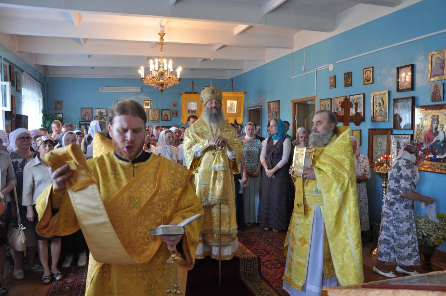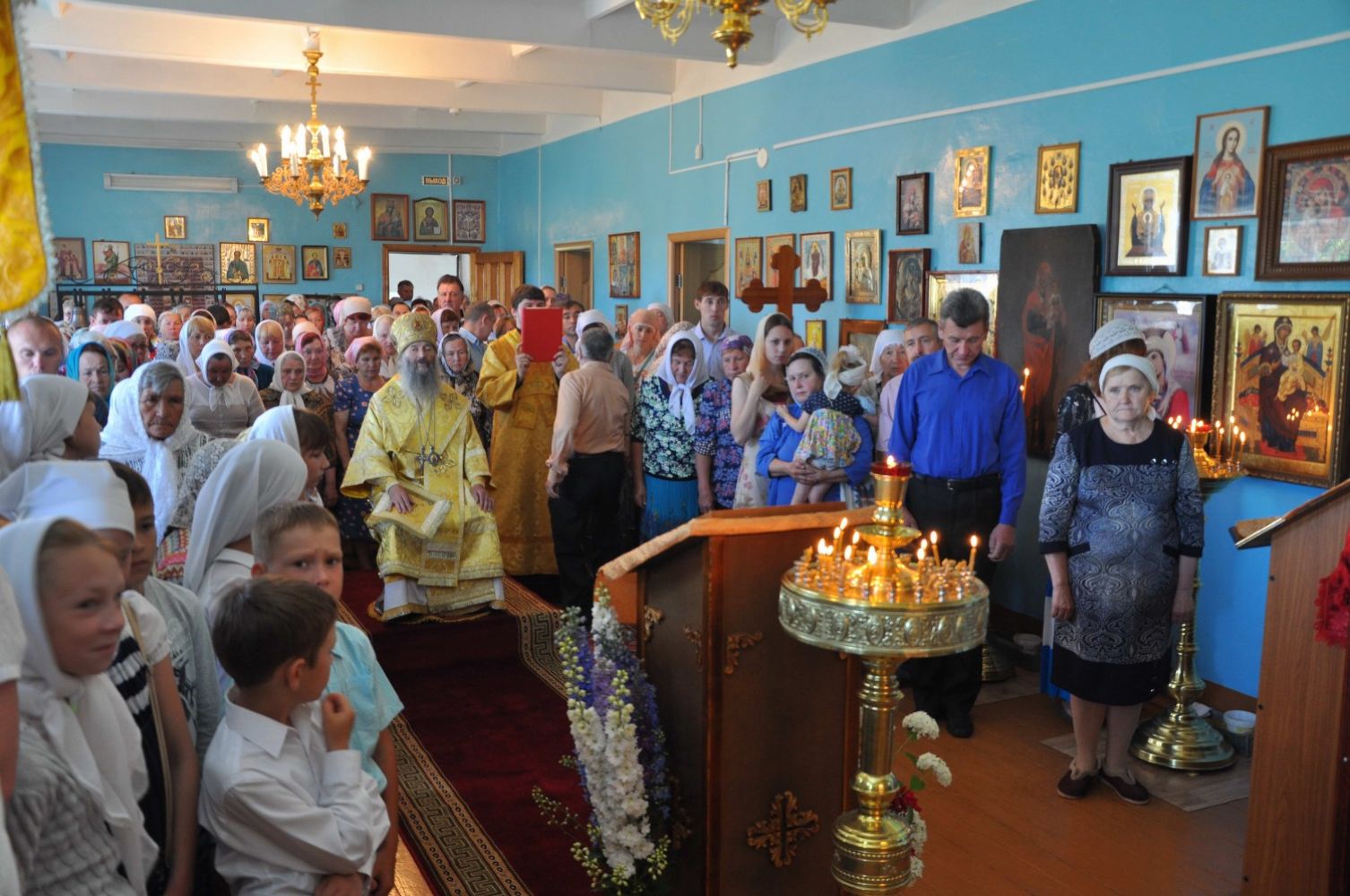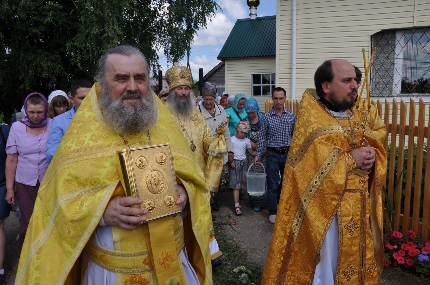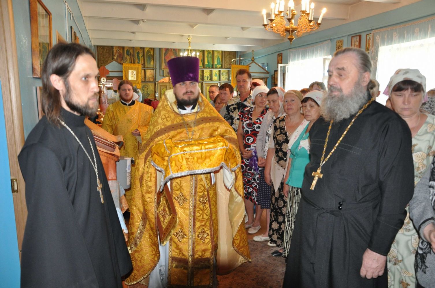 Сослужили ему настоятель храма протоиерей Николай Ярошевич, настоятель храма Покрова Пресвятой Богородицы с. Чкарино протоиерей Валентин Пылаев, настоятель храма Святой Троицы с. Вятское иерей Вячеслав Мамаев.