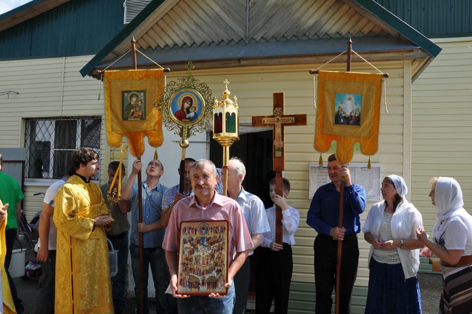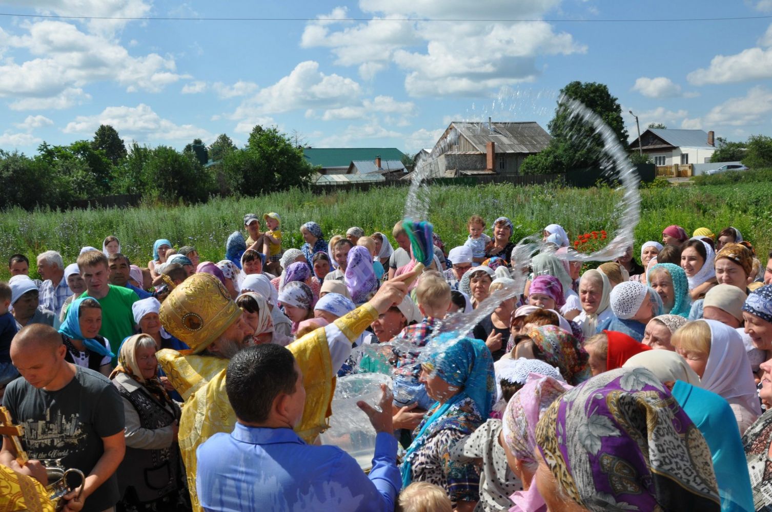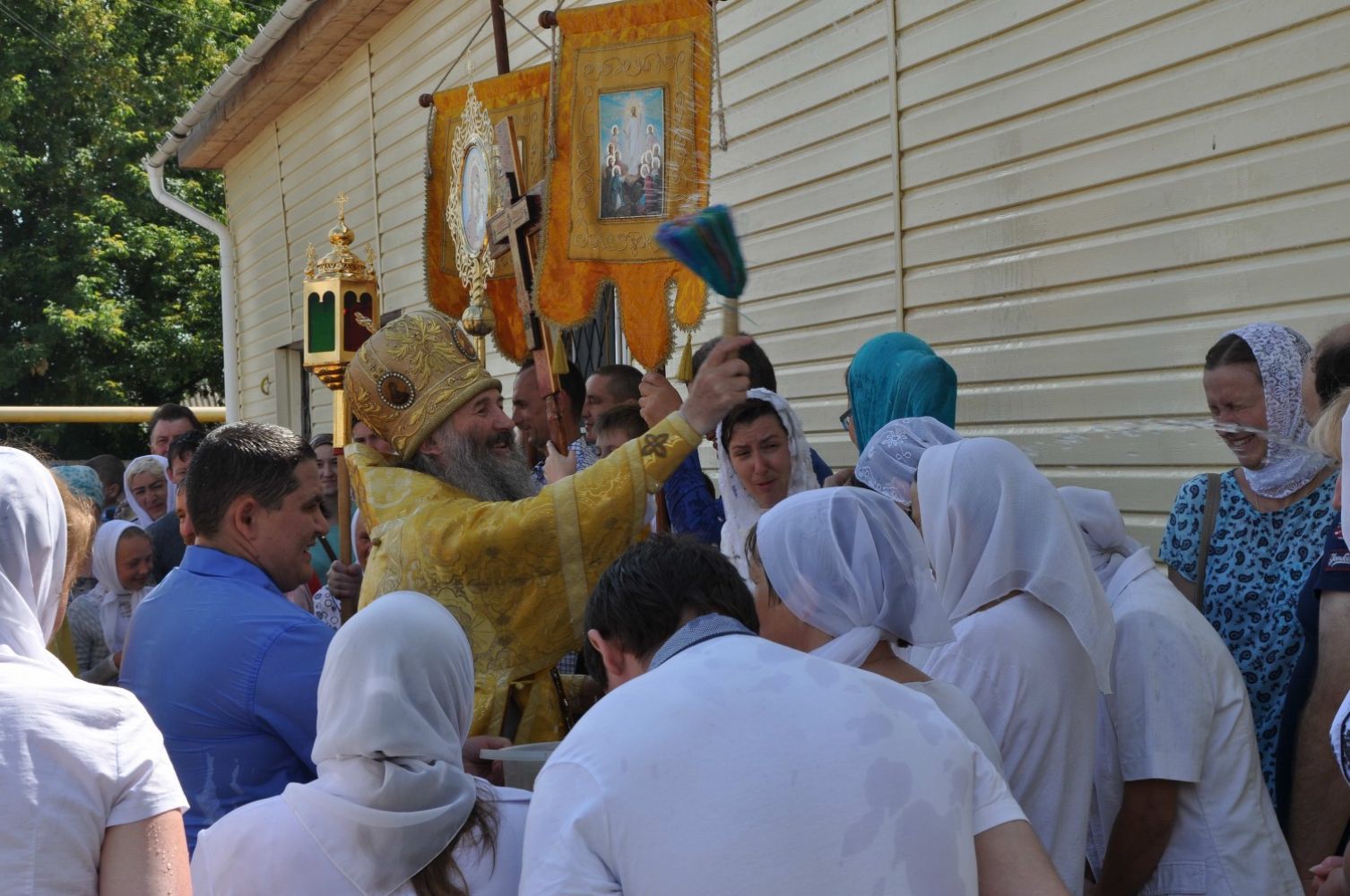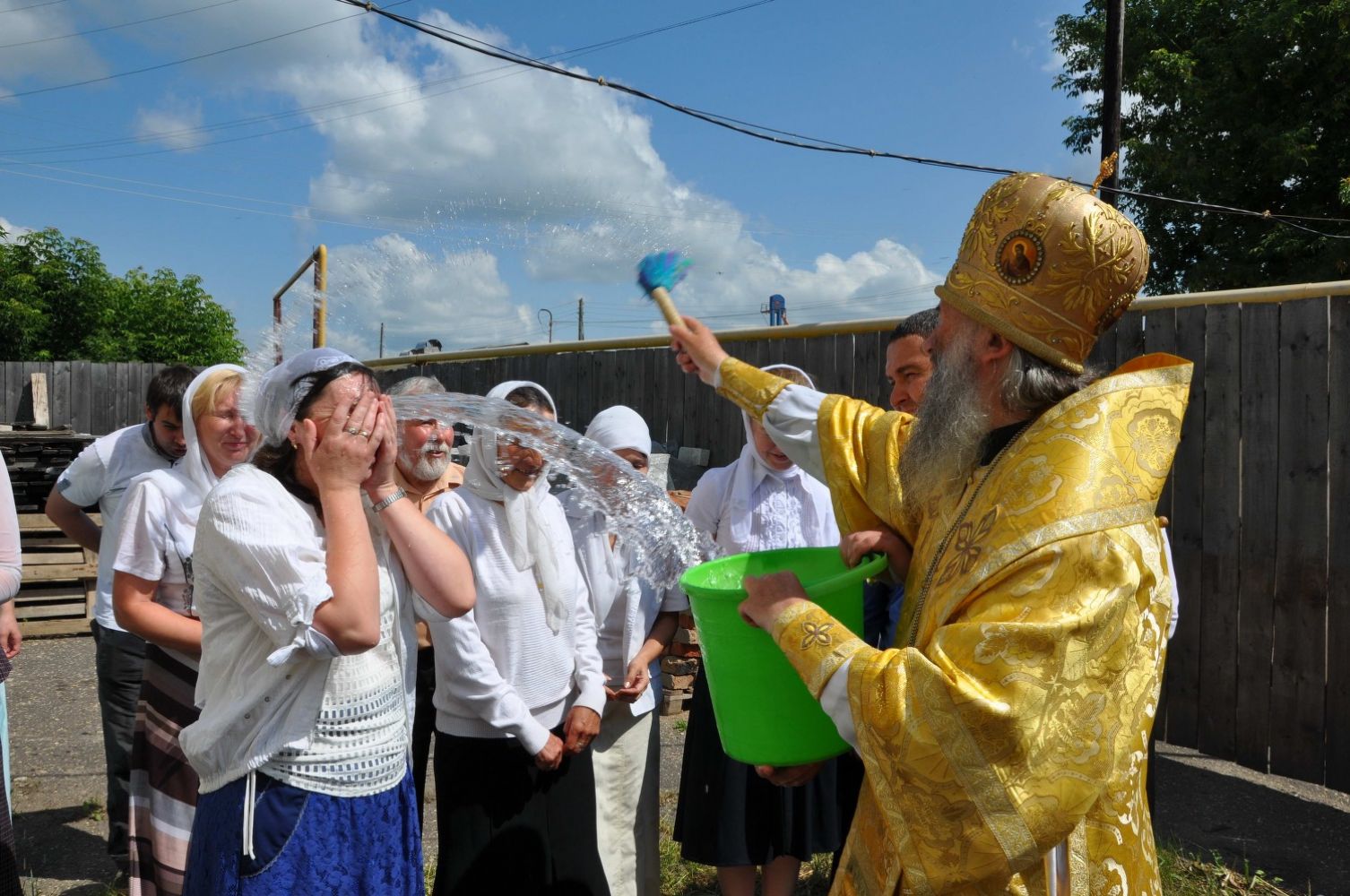 Сразу по окончании Литургии был совершен молебен и крестный ход вокруг храма. Владыка обильно окроплял святой водой верующих, а в конце молебна прочитал молитву в честь наступающего праздника Всех Святых в земле Российской просиявших.