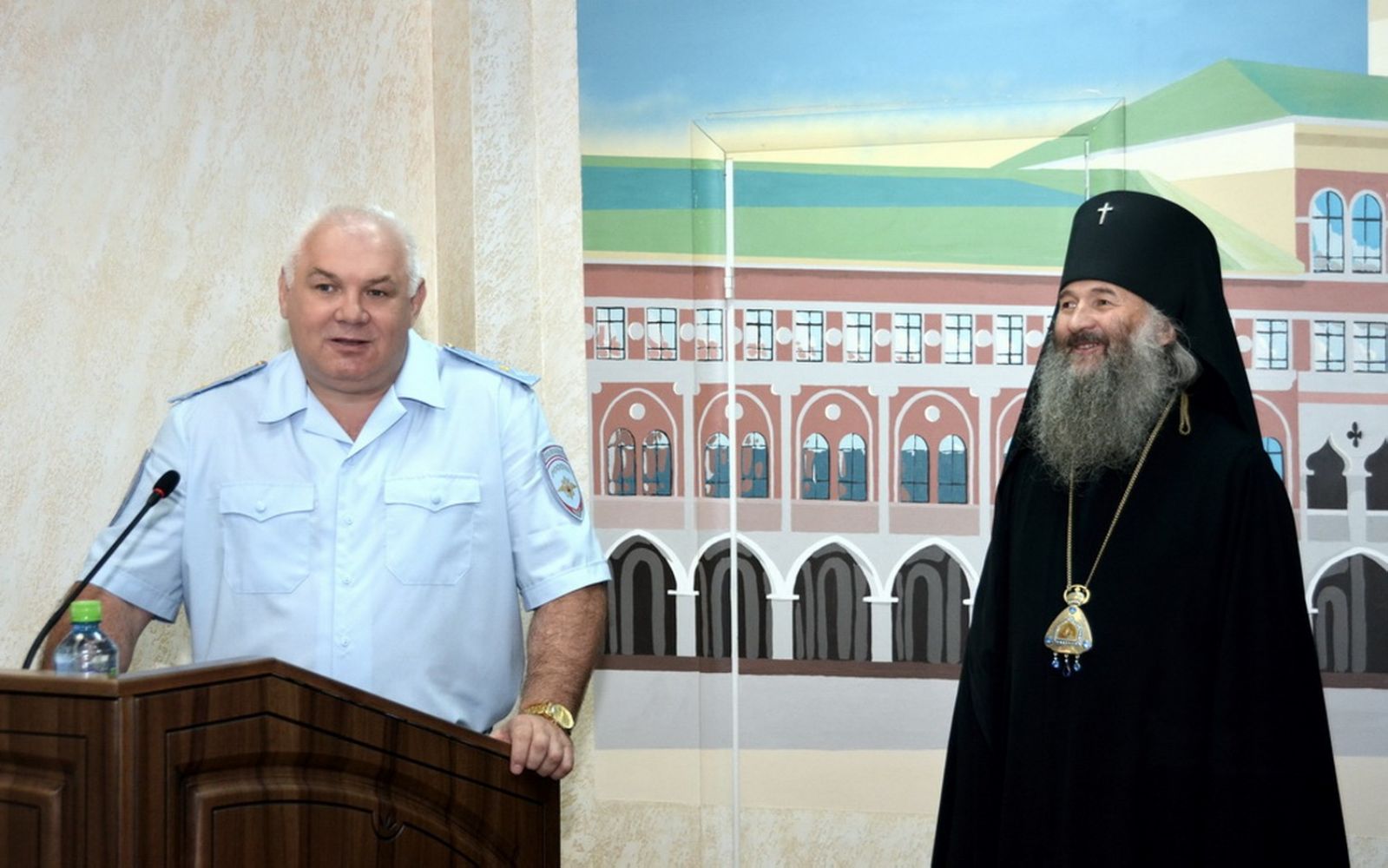 В торжественной обстановке иконы министру внутренних дел по Республике Марий Эл генерал-майору полиции Виктору Косареву, заместителю начальника полиции (по охране общественного порядка) полковнику полиции Сергею Федоровичу и начальнику УМВД России по г. Йошкар-Оле полковнику полиции Владимиру Хорикову передал архиепископ Йошкар-Олинский и Марийский Иоанн.