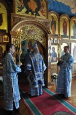 Вечером Владыка в сослужении секретаря Епархиального управления иеромонаха Серафима (Пасанаева) совершил Вечерню с акафистом Иконе Божией Матери «Троеручица» в Епархиальном домовом храме.