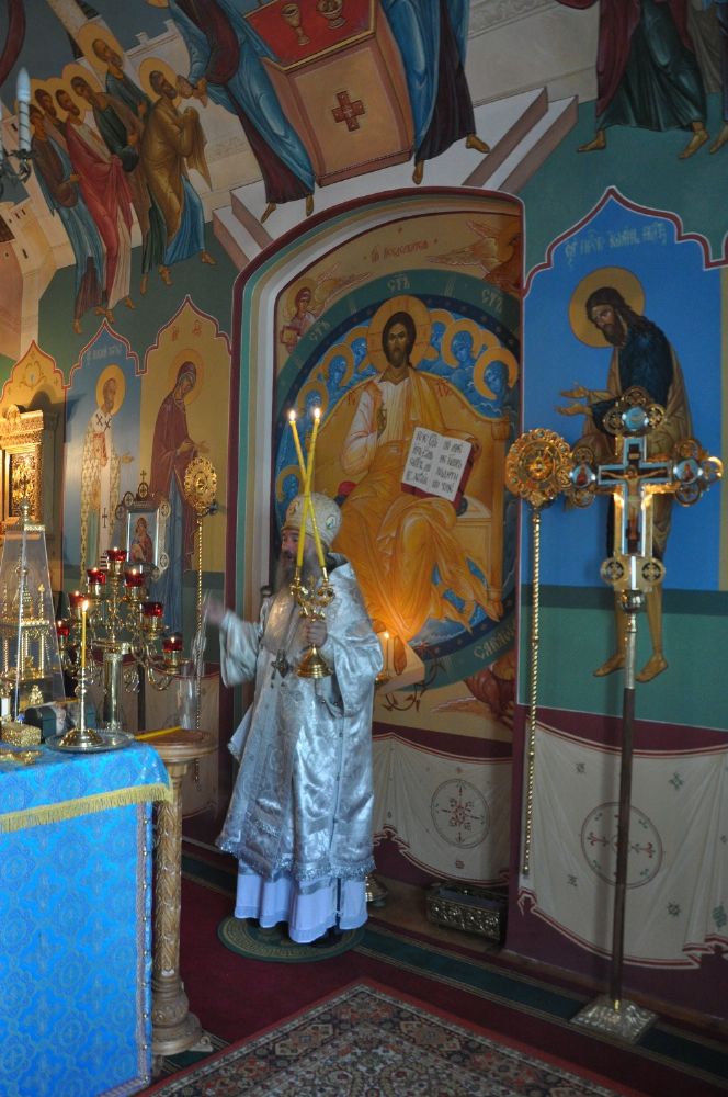 Владыке сослужил секретарь Епархиального управления иеромонах Серафим (Пасанаев).