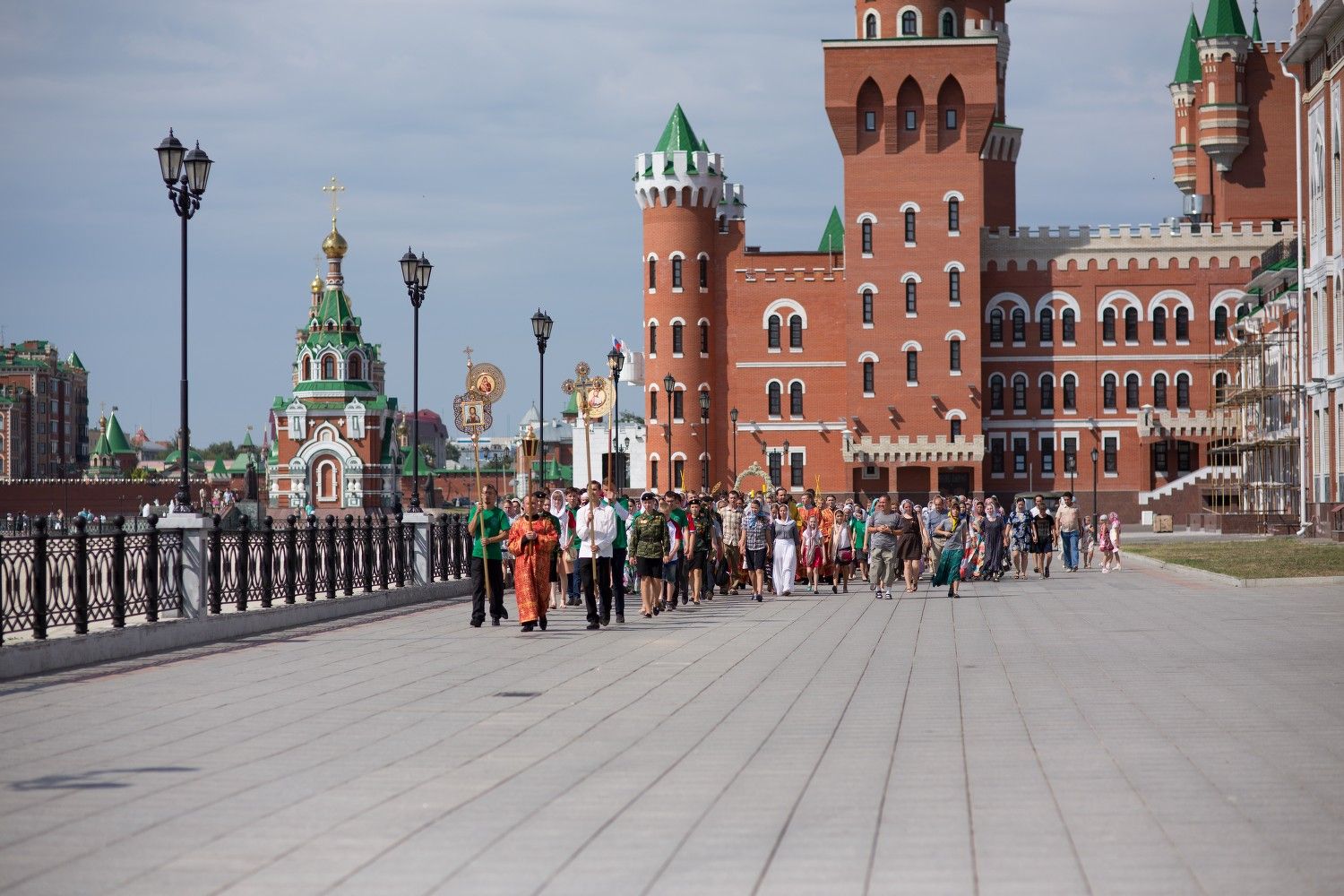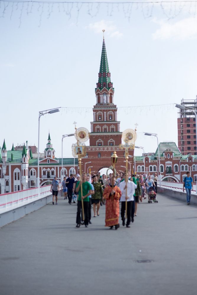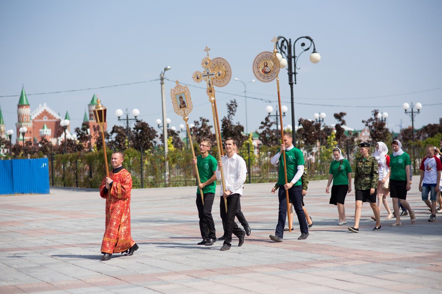 По окончании Литургии был совершен крестный ход по набережной реки Малая Кокшага: из Благовещенского собора к Троицкому храму, затем по Воскресенскому мосту на Патриаршую площадь, далее по набережной Брюгге к Спасской башне и по мосту вернулся в Благовещенский собор. В крестном ходе приняли участие руководители молодежных отделов церковных округов Йошкар-Олинской епархии, кадеты ВПКО «Наследники» во имя Великого князя Владимира п. Килемары, православные добровольцы Йошкар-Олинской епархии и молодежь из всех районов Республики.
