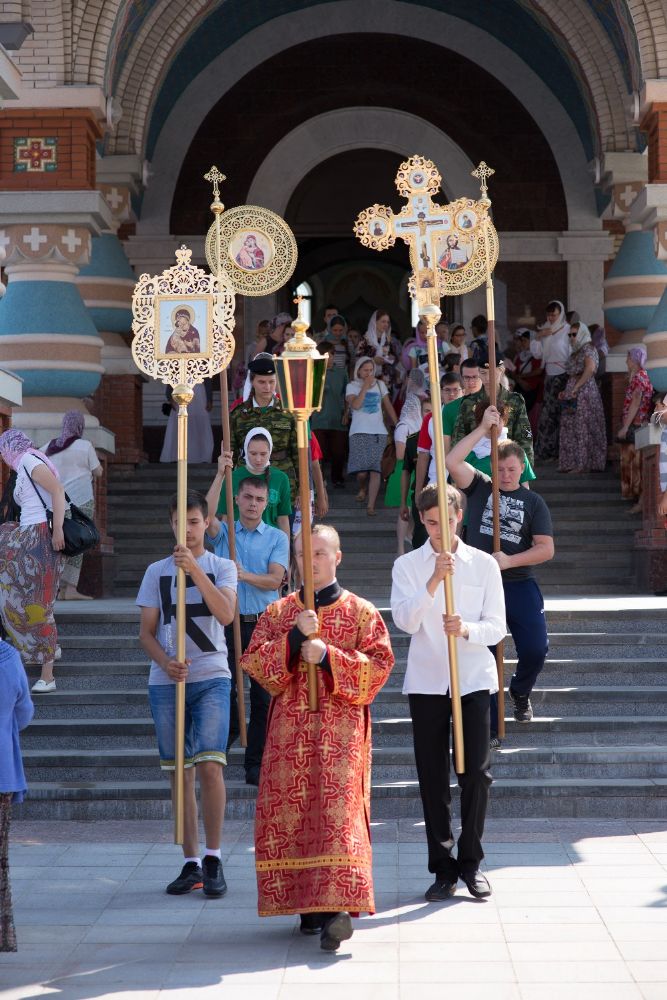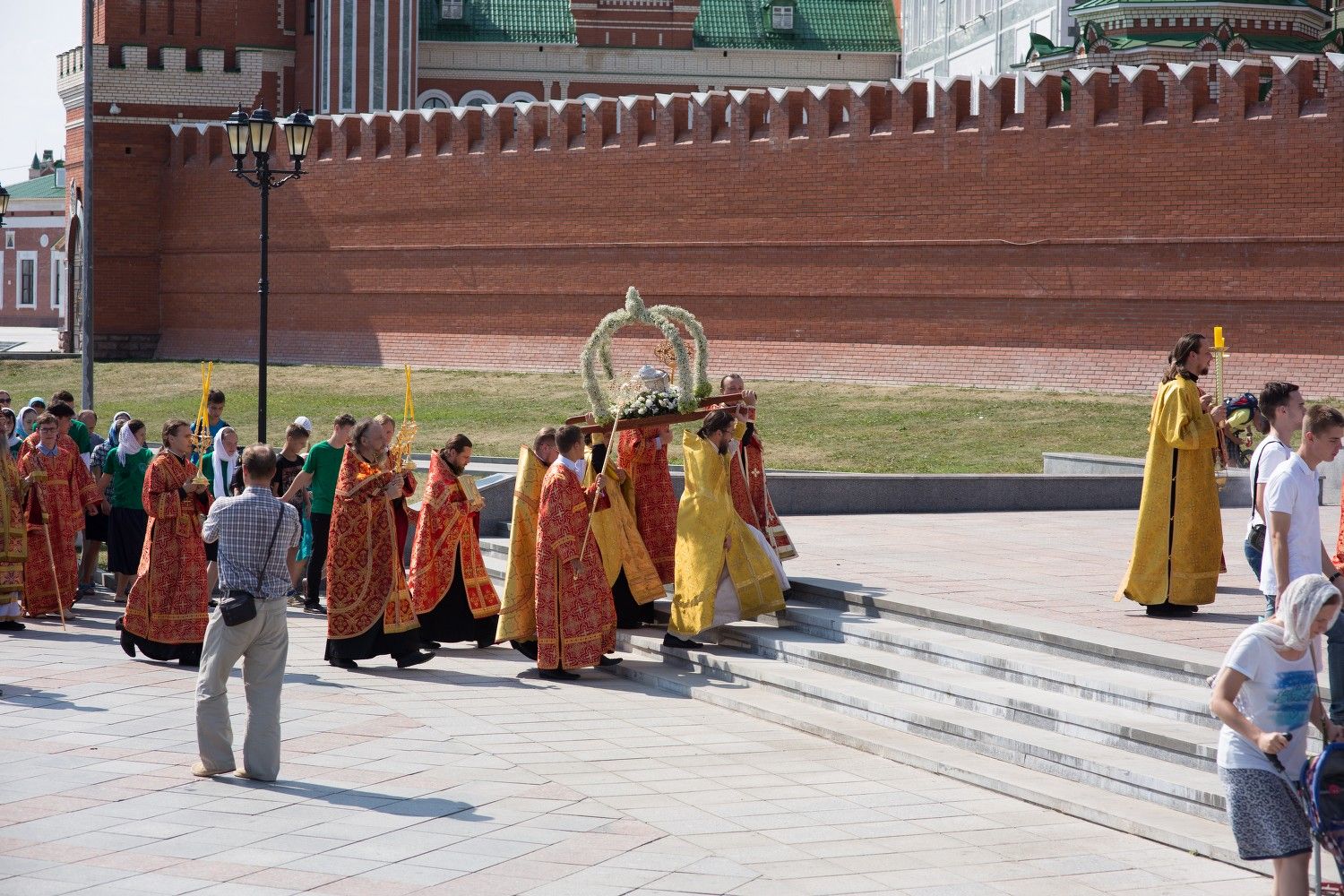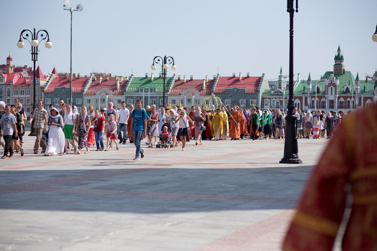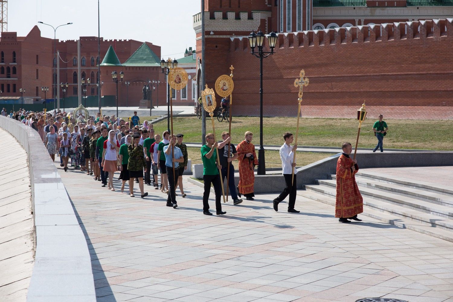 По окончании Литургии был совершен крестный ход по набережной реки Малая Кокшага: из Благовещенского собора к Троицкому храму, затем по Воскресенскому мосту на Патриаршую площадь, далее по набережной Брюгге к Спасской башне и по мосту вернулся в Благовещенский собор. В крестном ходе приняли участие руководители молодежных отделов церковных округов Йошкар-Олинской епархии, кадеты ВПКО «Наследники» во имя Великого князя Владимира п. Килемары, православные добровольцы Йошкар-Олинской епархии и молодежь из всех районов Республики.