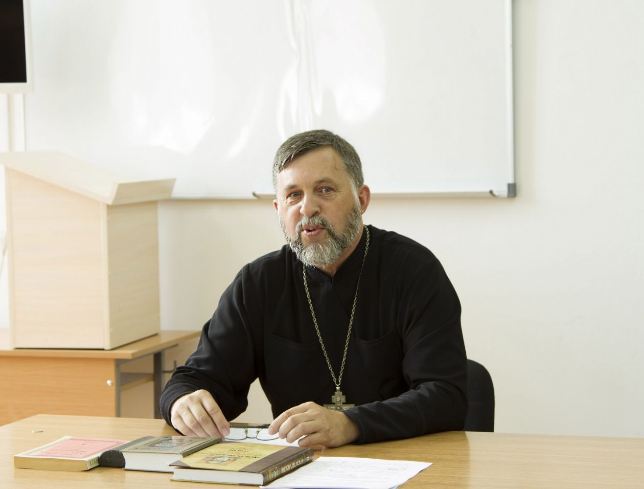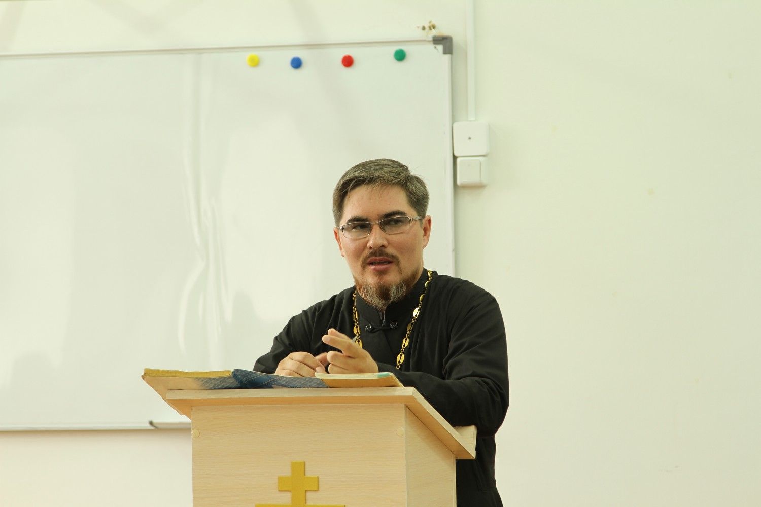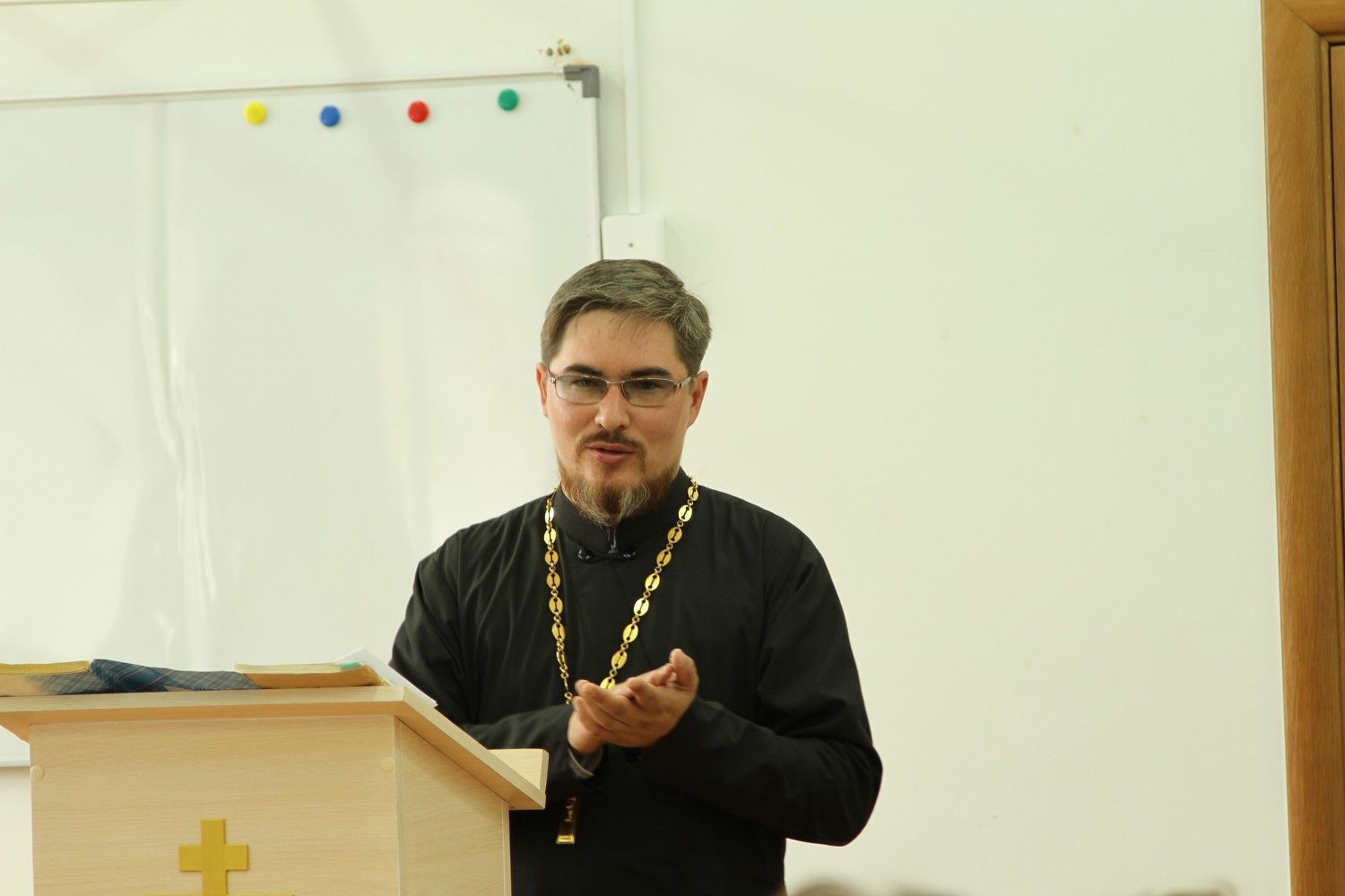 С приветственным словом к слушателям обратился исполняющий обязанности руководителя Епархиального отдела религиозного образования и катехизации иерей Александр Козлов.