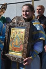 После Великого славословия состоялся крестный ход вокруг храма с плащаницей с изображением Успения Пресвятой Богородицы.