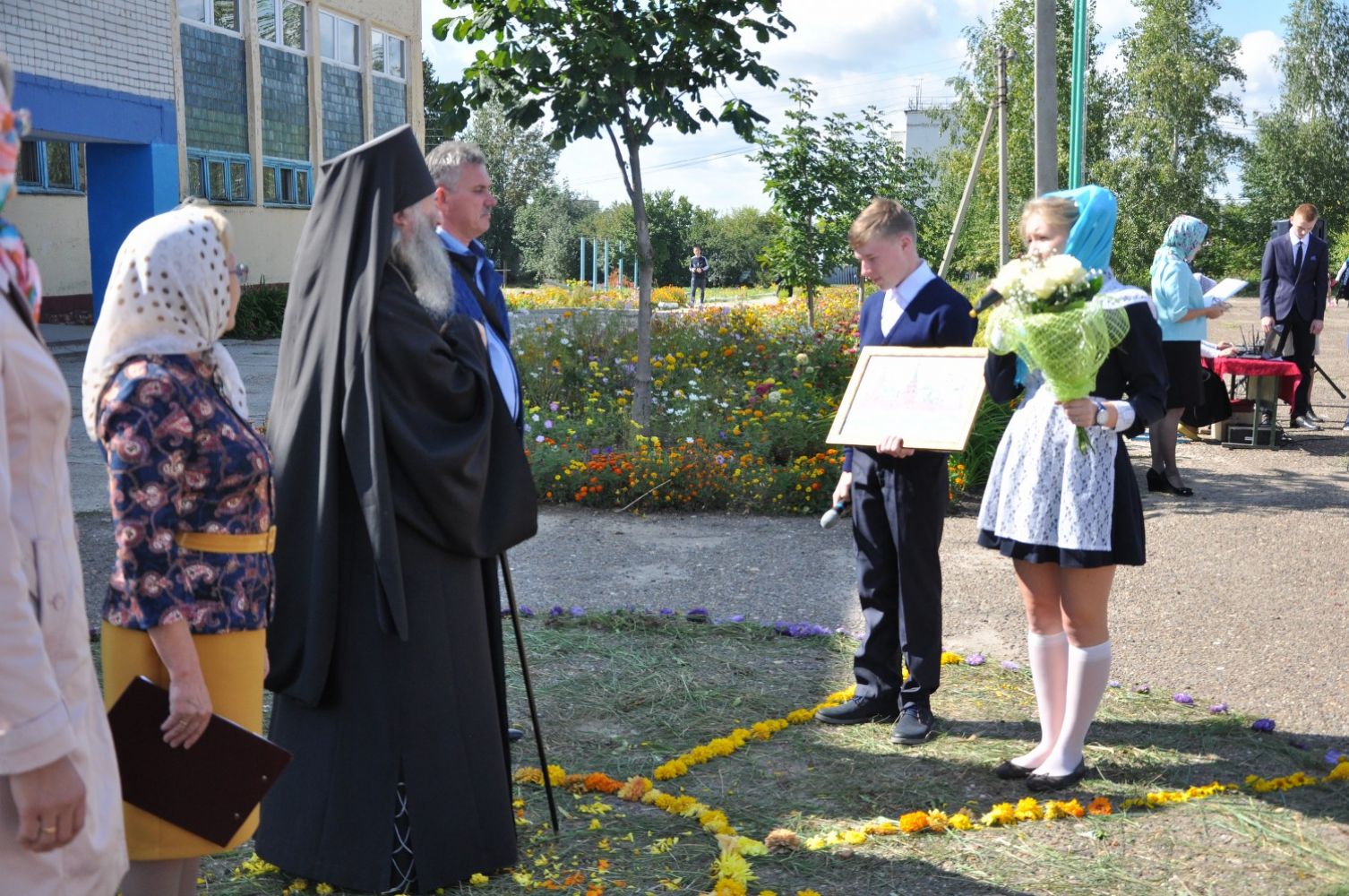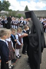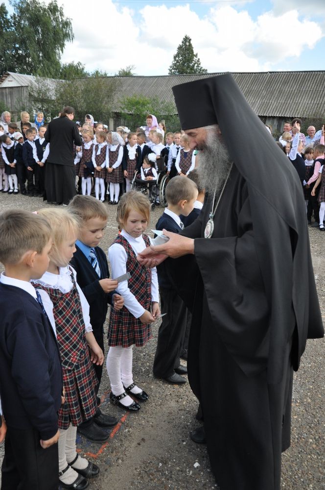 В заключение своего визита, Его Высокопреосвященство, по сложившейся традиции посетил Большепаратскую общеобразовательную среднюю школу и присутствовал на линейке, посвященной Дню знаний. Каждому учащемуся были вручены иконки Спасителя и Божией Матери. По окончании торжественного акта Владыка встретился с первоклассниками и с будущими выпускниками.