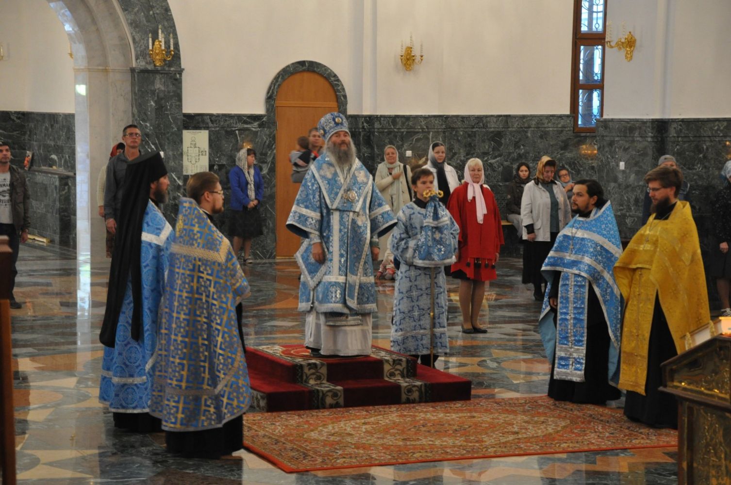 Владыке сослужили: секретарь Епархиального управления иеромонах Серафим (Пасанаев) и клирики собора.