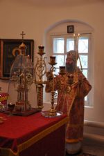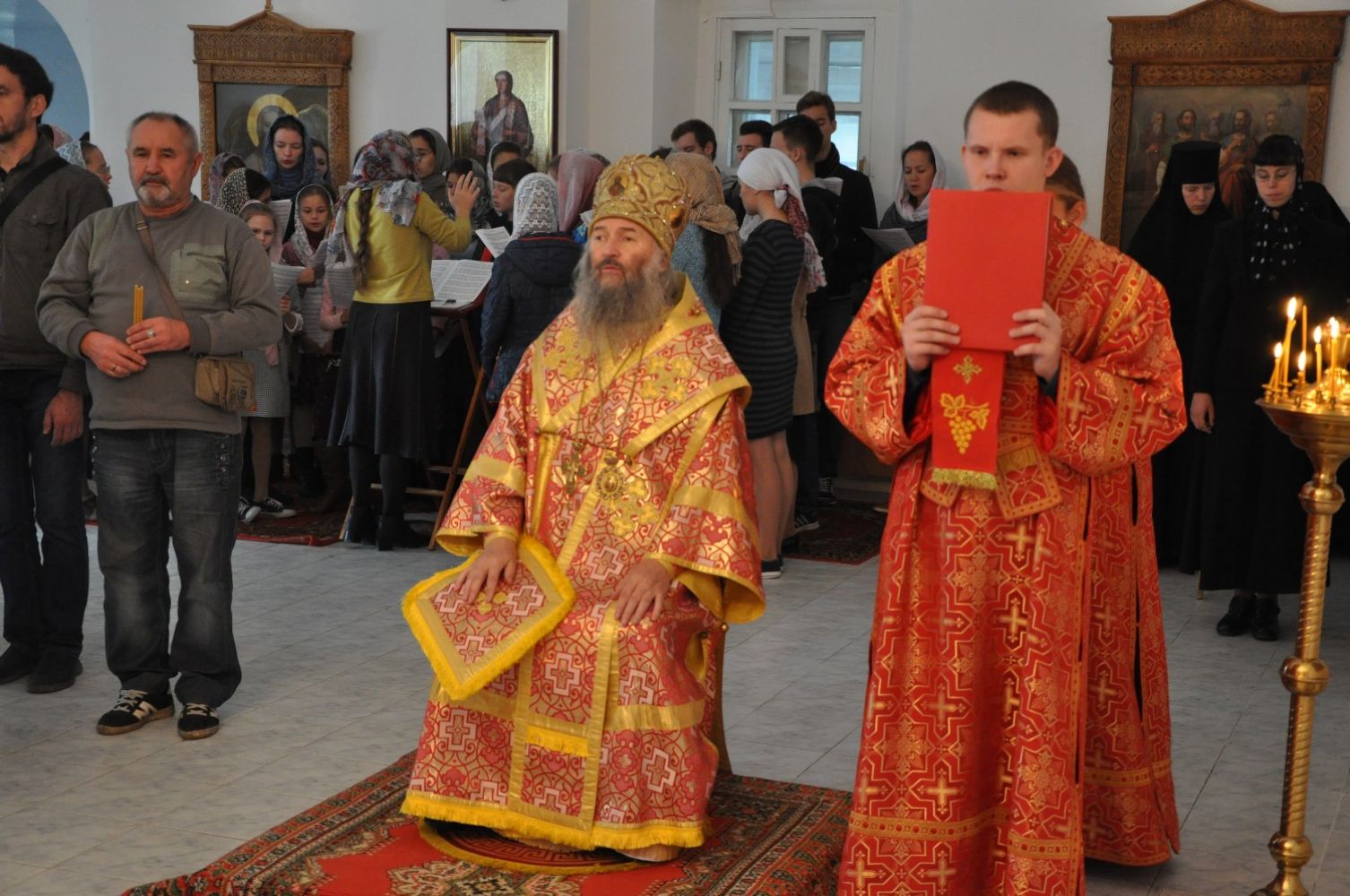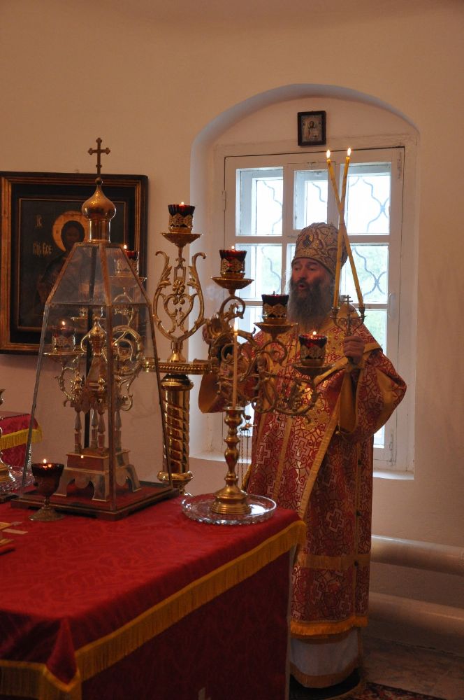 Владыке сослужили: секретарь Епархиального управления иеромонах Серафим (Пасанаев) и клирик монастыря иерей Михаил Лежнин.