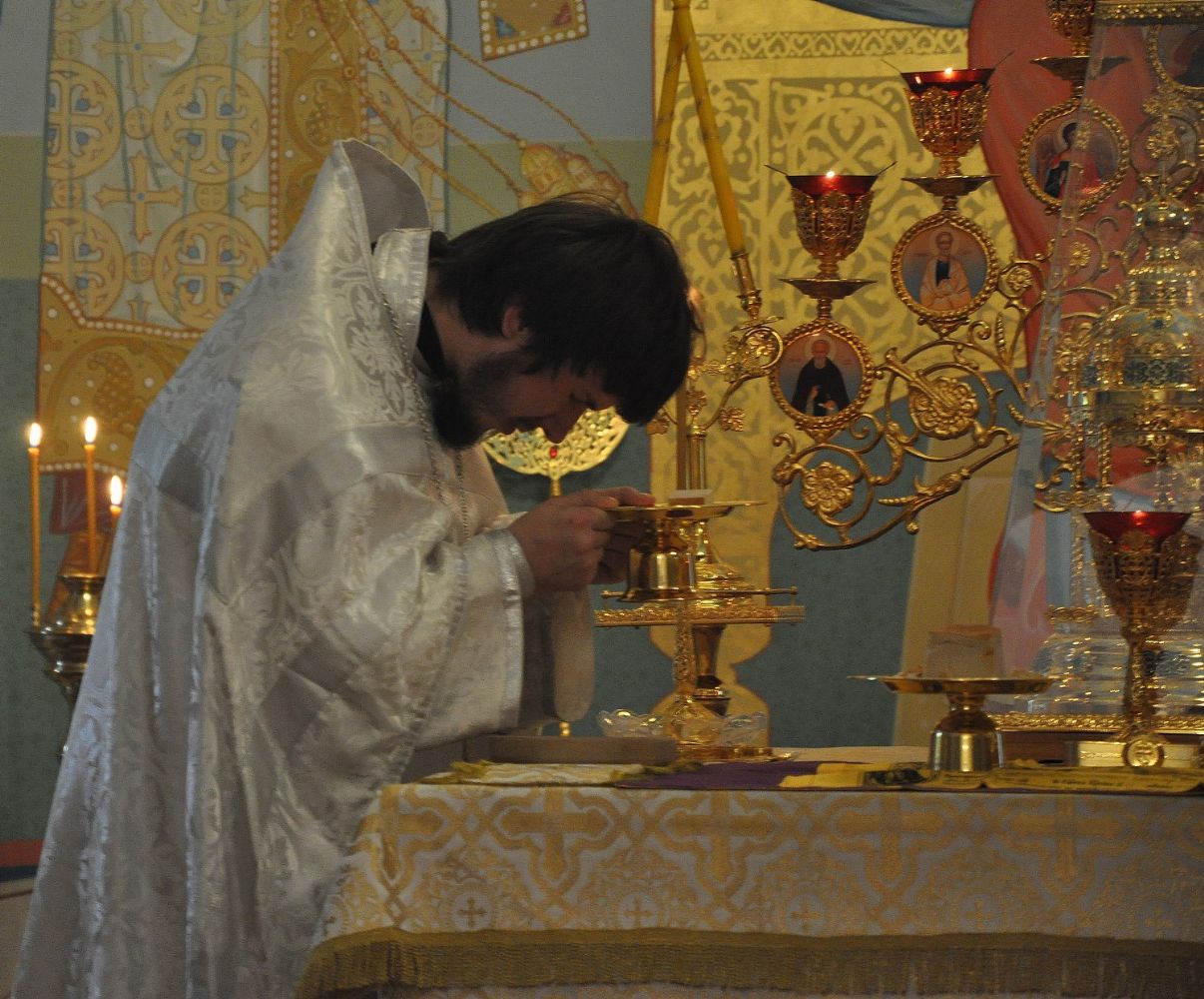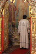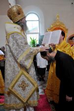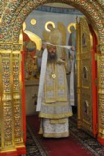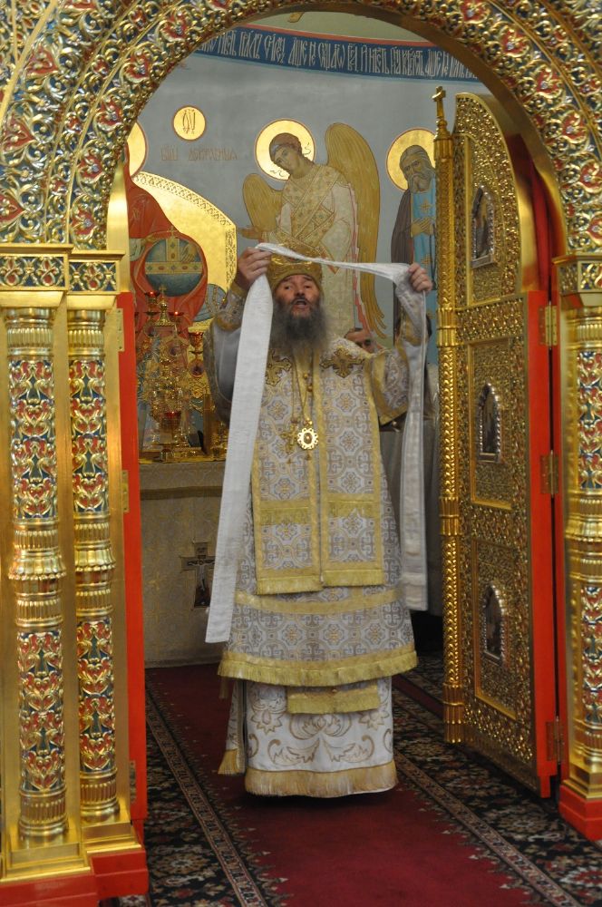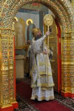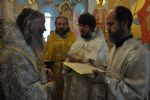Владыке сослужил: секретарь Епархиального управления иеромонах Серафим (Пасанаев), настоятель храма протоиерей Александр Бачурин и клирики храма: иерей Виктор Умрихин и иерей Николай Бабич. Богослужебные песнопения исполнил хор храма под управлением регента Елены Умрихиной.