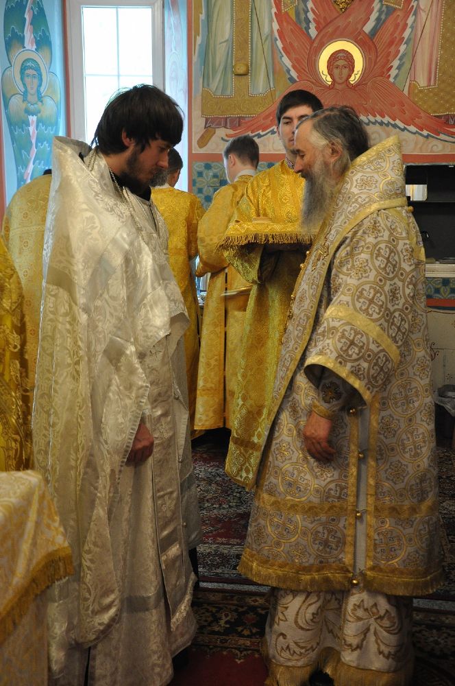 За Литургией Владыка рукоположил в сан пресвитера диакона Димитрия Копылова клирика Вознесенского собора г.Йошкар-Олы и в сан диакона был рукоположен студент II курса Владимирской Духовной семинарии Владимир Каплунов. Сорокоуст новорукоположенные будут проходить в Вознесенском соборе г.Йошкар-Олы.