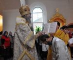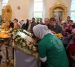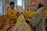 На Богослужении Владыка помазал всех молившихся в храме елеем.