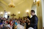 Представители общин глухих и слабослышащих людей из епархий, прибывшие в Москву на Патриаршее богослужение, преподнесли Его Святейшеству, картину с изображением Христа, исцеляющего глухого.