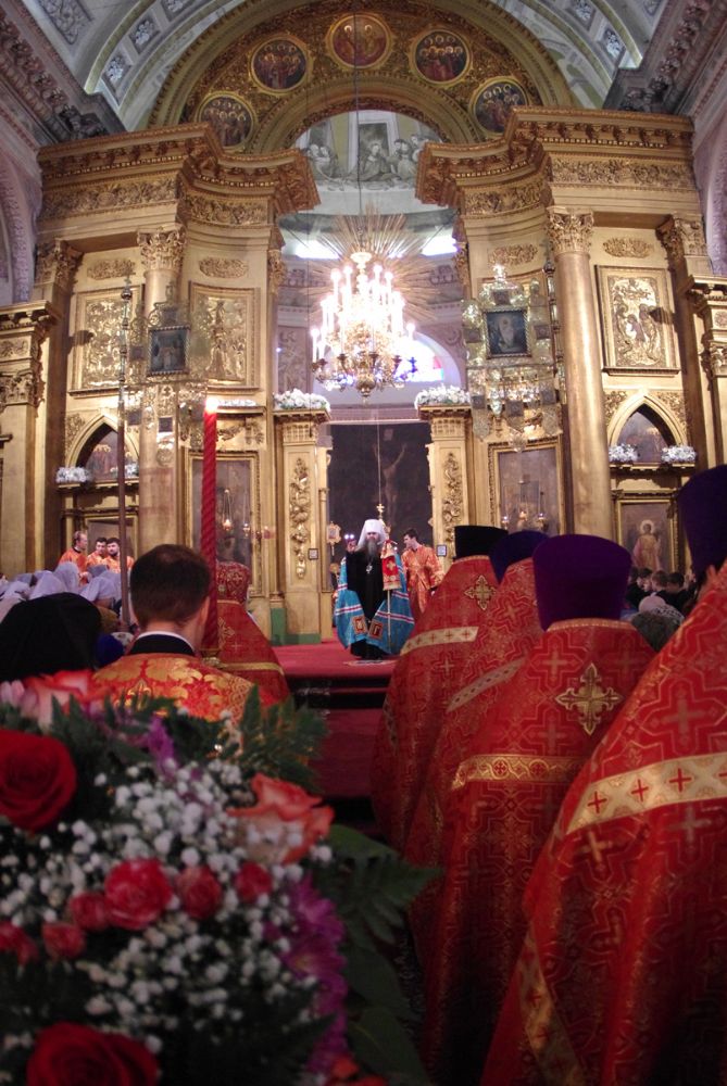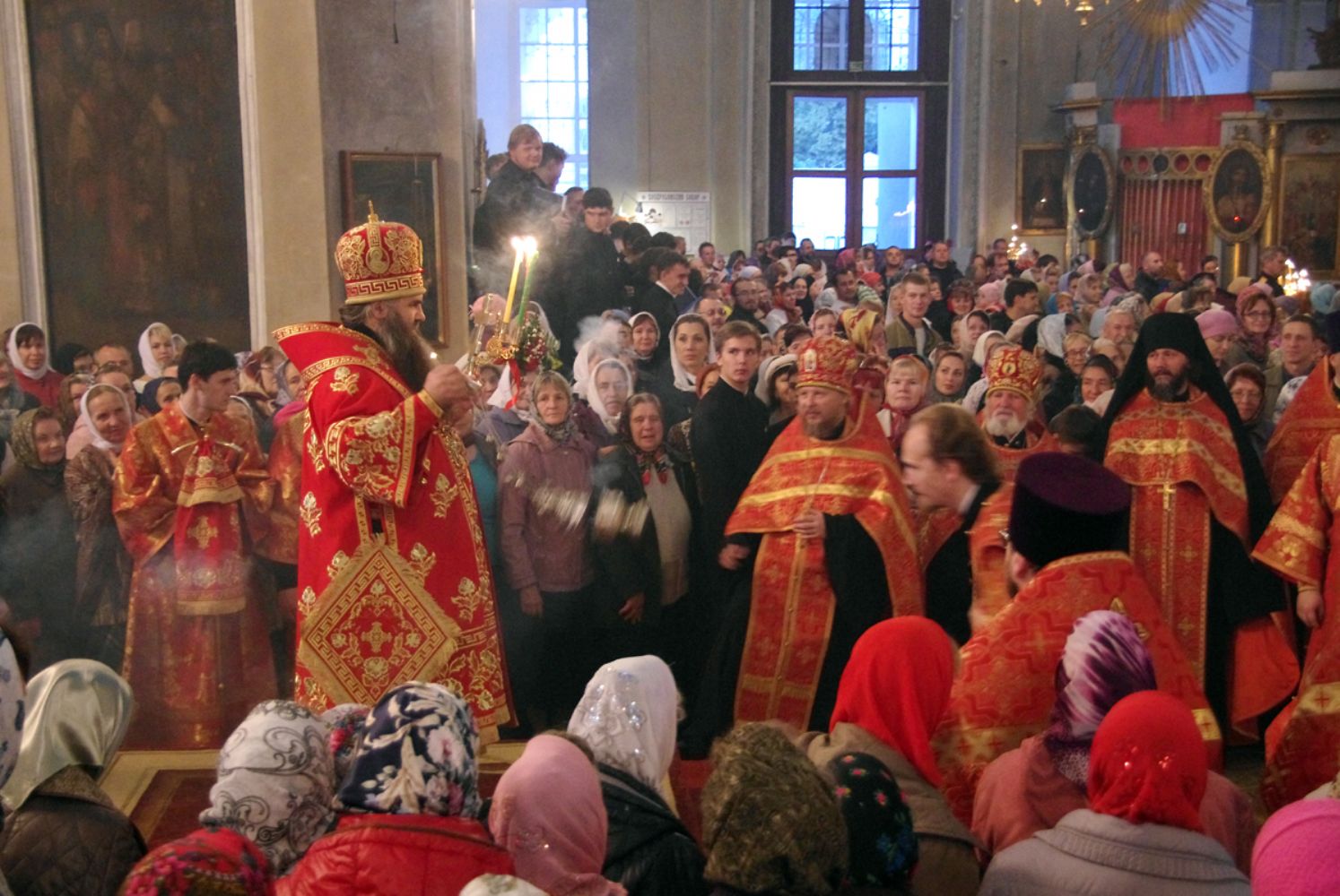 Вечером 25 сентября марийские паломники стали соучастниками необычного торжества – престольного праздника главного собора Арзамаса. Храм освящен в честь Воскресения Христова и престольный праздник по традиции совершается 26 сентября, когда Церковь празднует память Обновления храма Воскресения Христова в Иерусалиме. В народе этот праздник еще именуется «Воскресение словущее». По многолетней традиции богослужения накануне и в сам день праздника совершаются пасхальным чином. Не стал исключением и этот день. Вечернее богослужение возглавил митрополит Нижегородский и Арзамасский Георгий в сослужении клириков Нижегородской епархии. За богослужением молились воспитанники православной гимназии и многочисленные прихожане храма. Песнопения исполнялись на два хора – мужской хор Нижегородской духовной семинарии под управлением регента Натальи Мякининой стал традиционным украшением «Осенней Пасхи в Арзамасе».