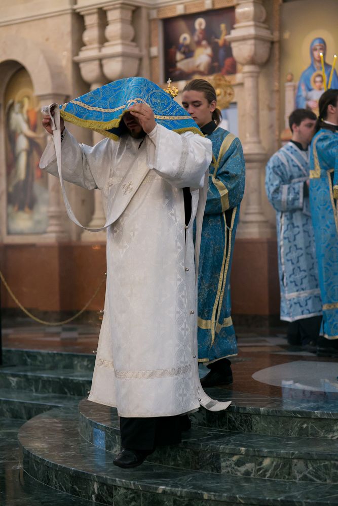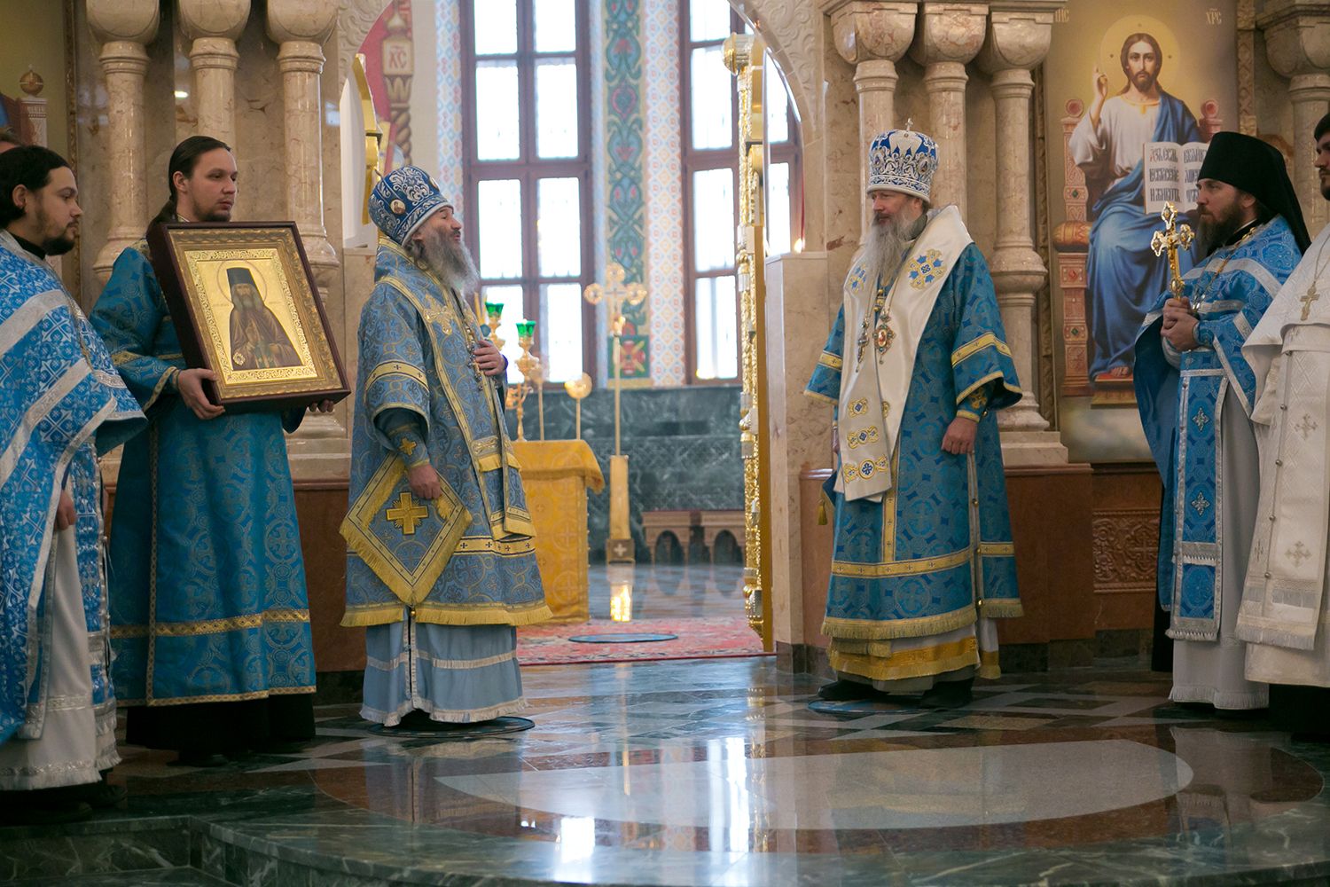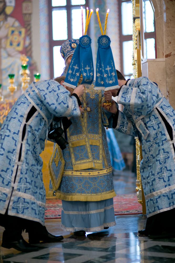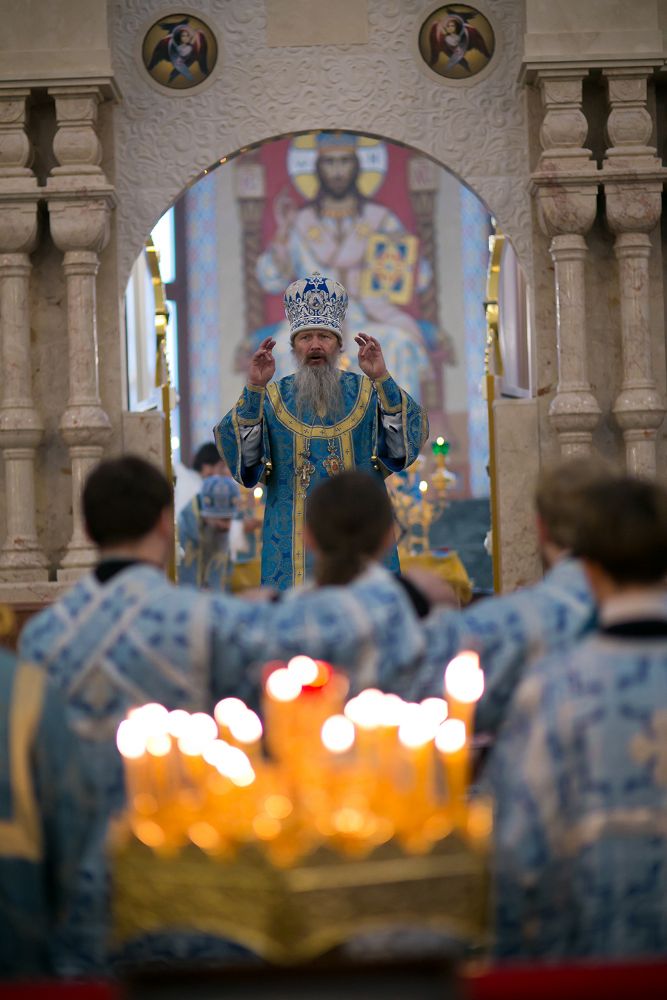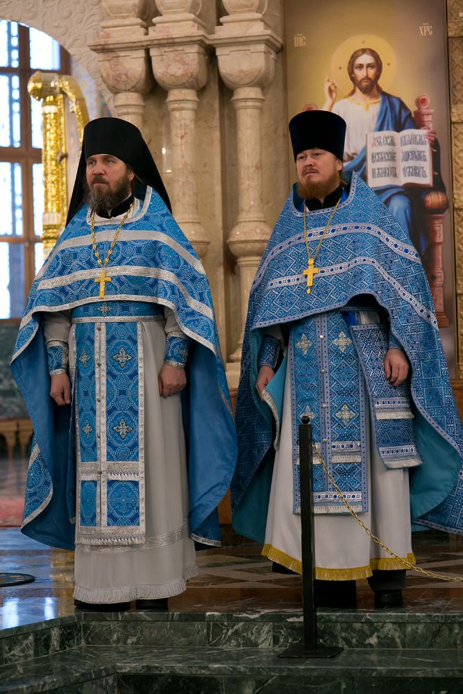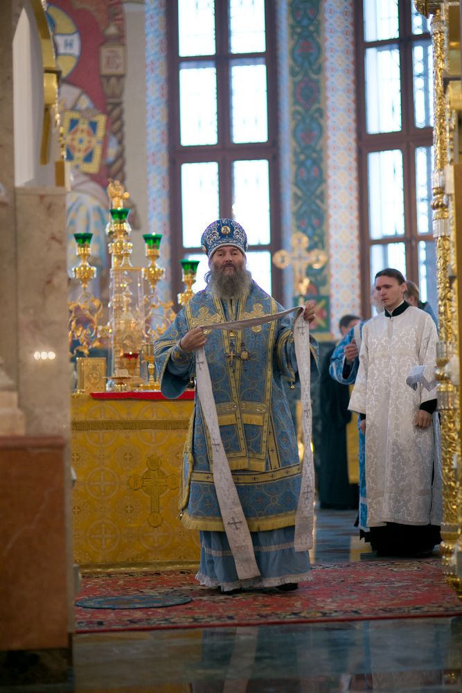 Богослужение возглавили архиепископ Йошкар-Олинский и Марийский Иоанн и митрополит Вятский и Слободской Марк. Архиереям сослужили: секретарь Йошкар-Олинского епархиального управления иеромонах Серафим (Пасанаев), секретарь Вятской Митрополии иерей Виталий Лапшин, ключарь собора протоиерей Сергий Поглазов, клирики собора: иерей Никифор Захаров, иерей Евгений Самойлов и настоятель Царево-Константиновской Знаменской церкви г. Кирова иерей Игорь Шиляев.