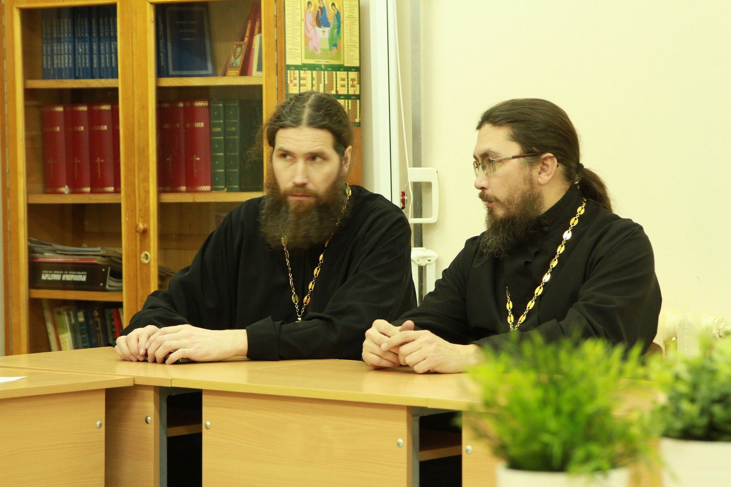 По завершении молебна благочинные церковных округов, помощники по миссионерскому служению и специалисты Епархиального отдела обсудили проблемы и перспективы просветительского служения в Епархии. На собрании были представлены результаты реализации проекта «Учись, миссионер – народов просветитель!», получившего грантовую поддержку конкурса «Православная инициатива 2015-2016».
