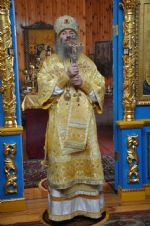 Владыке сослужили: секретарь Епархиального управления иеромонах Серафим (Пасанаев), благочинный Луговомарийского церковного округа, настоятель храма протоиерей Алексий Никитин и клирик храма иерей Владимир Яшин.