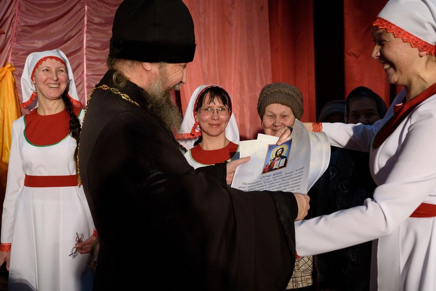 С большим радушием встречали гостей жители поселка. А так как поездка была миссионерской, то после концерта сестрами прямо в зале дома культуры были розданы зрителям буклеты «Молитвы на марийском языке». А батюшка со своей стороны каждому хористу преподнес в дар книгу.