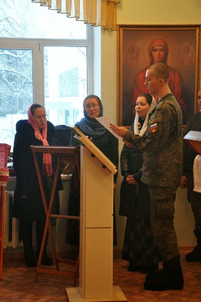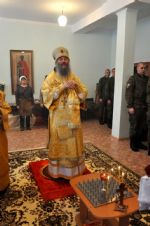 Владыке сослужил: руководитель отдела по взаимодействию с правоохранительными органами и вооруженными силами, настоятель храма святого преподобного Серафима Саровского г. Йошкар-Олы протоиерей Александр Бачурин и духовник воинской части, помощник командира дивизии по работе с военнослужащими иерей Георгий Колотов.