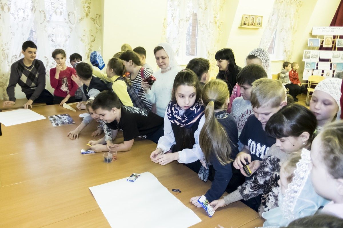 В познавательной игре приняли участие воспитанники воскресной школы военного храма, школьники общеобразовательной школы №6 и дети прихожан храма. Всего собралось около 50 человек.