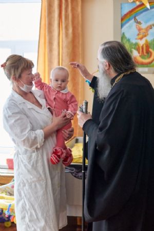 Помимо штатного персонала за детьми здесь помогают ухаживать сестры милосердия. И в этот приезд Владыки они все вместе помолились в молитвенной комнате о детях, оставшихся без родителей и людях, которые ухаживают за ними.