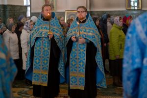 В этом году престольный праздник собора совпал с Великой субботой, поэтому торжественное богослужение было совмещено со скорбным памятованием о распятии и погребении Господа нашего Иисуса Христа.