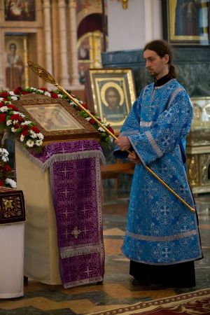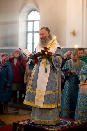 Накануне праздника, в пятницу вечером, Всенощное бдение в честь Благовещения Пресвятой Богородицы было совмещено с Чином погребения Плащаницы. После Великого славословия священство во главе с Владыкой Иоанном и прихожане прошли вокруг храма крестным ходом с Плащаницей Спасителя.