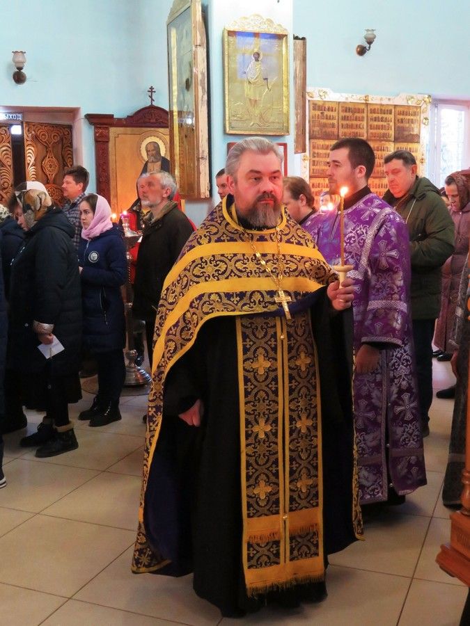 Это богослужение имеет заупокойный характер, однако в этом году из-за совпадения Великой субботы и праздника Благовещения, на утрени был совершен полиелей.