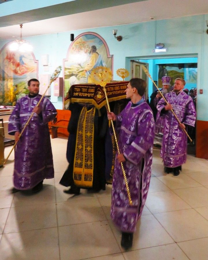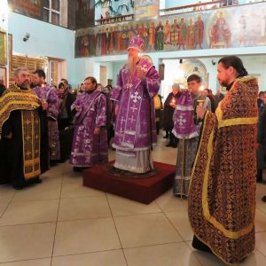 В канун Великой Субботы, а также праздника Благовещения Пресвятой Богородицы, Преосвященнейший епископ Волжский и Сернурский Феофан совершил утреню с чином погребения Плащаницы в Никольском кафедральном соборе города Волжска.
