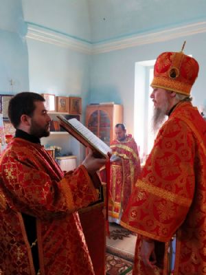 Преосвященнейшему владыке сослужили: настоятель храма протоиерей Леонтий Очетов, настоятель храма Рождества Христова села Арино протоиерей Николай Чузаев, настоятель храма иконы Божией Матери «Казанская» иерей Евгений Шамаев, диакон Иоанн Захаров.