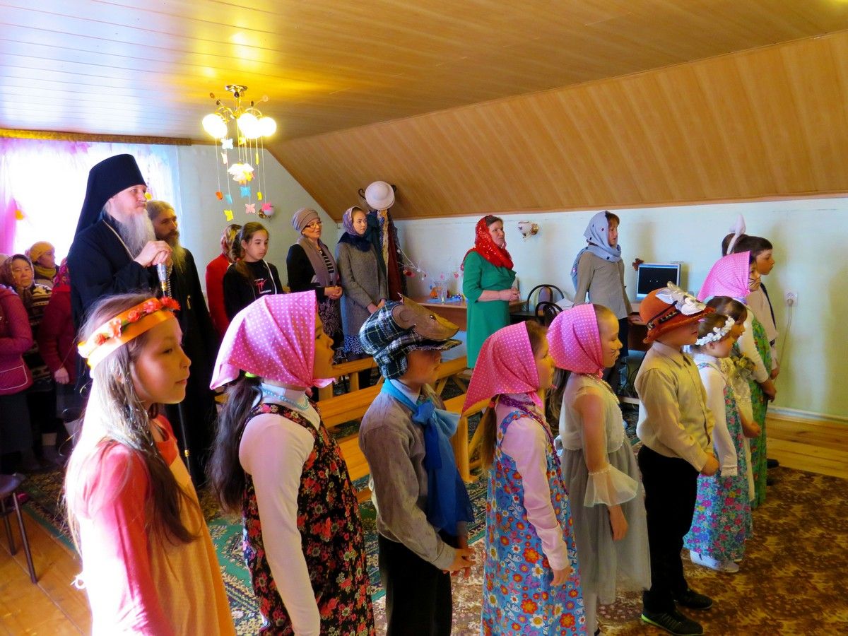 В заключение архипастырского визита перед Пресвященнейшим владыкой выступили дети воскресной школы поселка Коркатово, окормляет которую протоиерей Николай Чузаев.