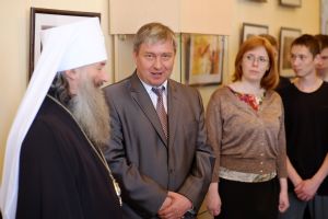 На церемонию открытия пришли наши почётные гости - заместитель министра культуры, печати и по делам национальностей Республики Марий Эл Александр Николаевич Луничкин, митрополит Йошкар-Олинский и Марийский Иоанн, директор Национального музея РМЭ им. Т. Евсеева Светлана Владимировна Зверева и руководитель Царевококшайской иконописной мастерской Станислав Валентинович Попов.