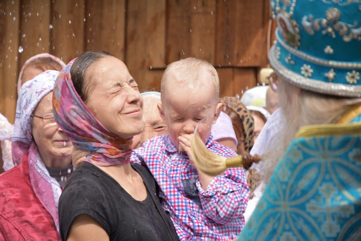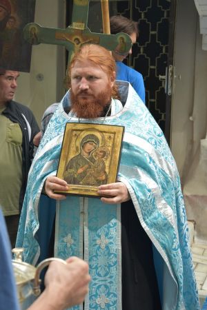 Богослужение началось торжественной встречей Архипастыря. После Божественной литургии прошел крестный ход вокруг храма с чтением Евангелия и кроплением святой водой.