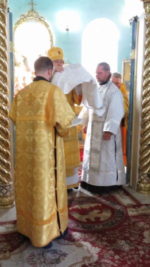 По окончании Литургии епископ Феофан совершил славление святым апостолам Петру и Павлу и обратился к верующим с архипастырским словом о празднике апостолов Петра и Павла, поздравил иерея Сергия Першакова с рукоположением, пожелав ему многая и благая лета, укрепления на пути служения Церкви Божией для спасения многих душ верующих и его светлой души.