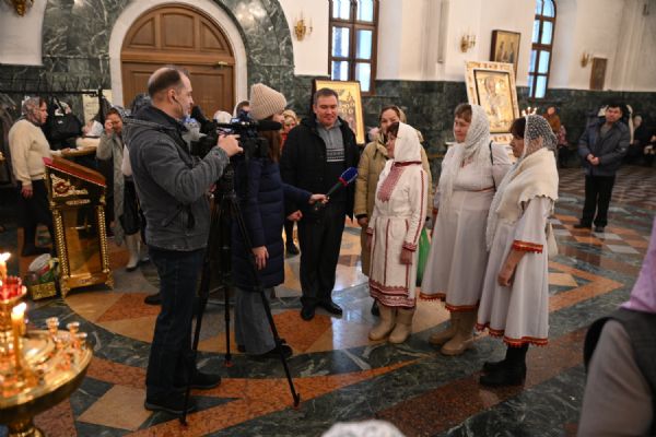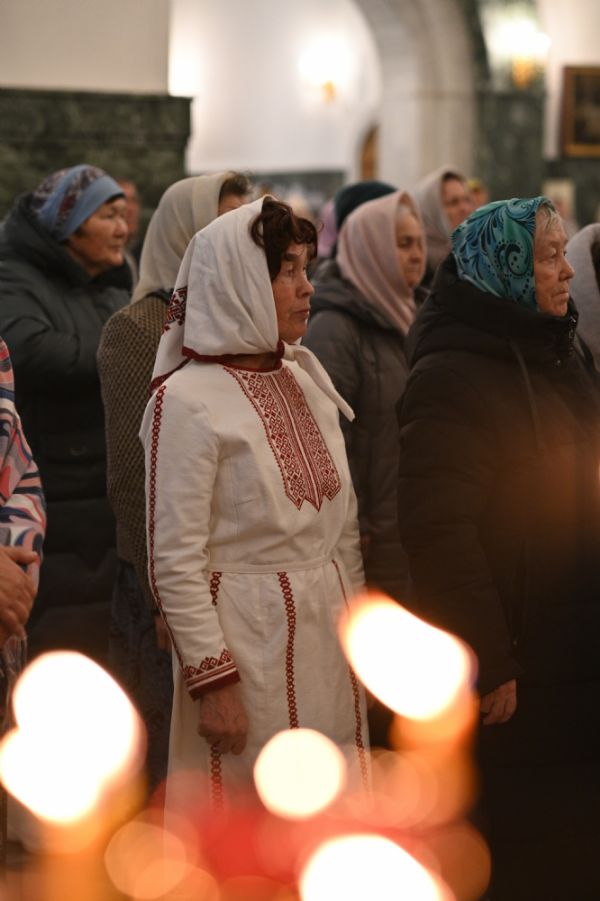 Тексты апостольских посланий и Евангелия звучали на двух языках – церковнославянском и марийском. Также на двух языках прихожане пели «верую» и «Отче наш».