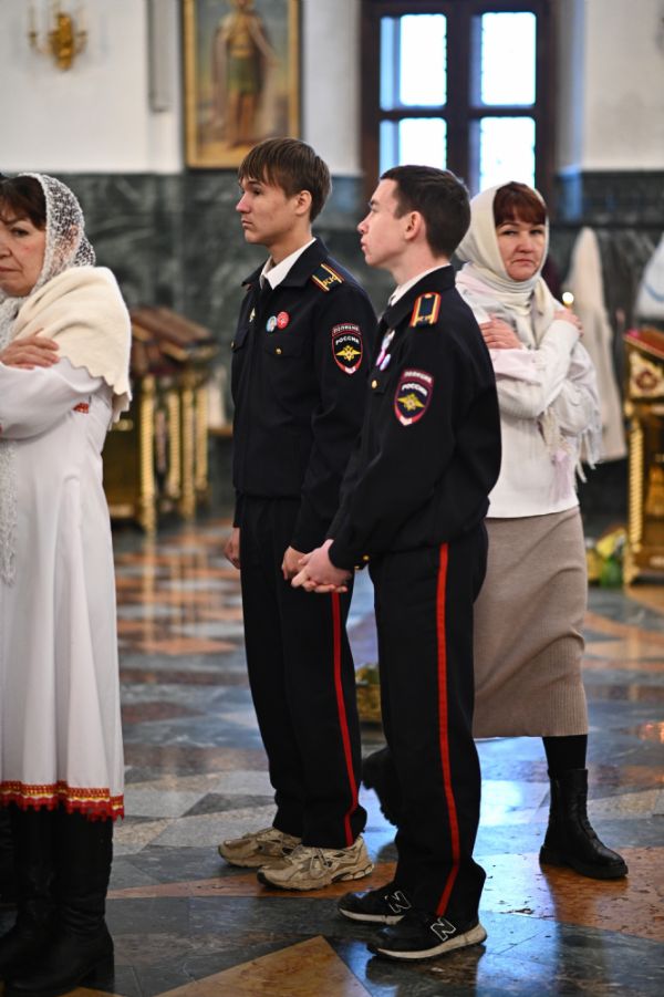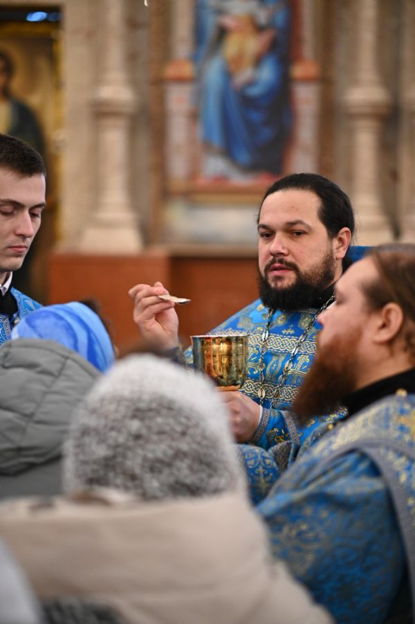 Проповедь по запричастном стихе произнес на марийском языке клирик Благовещенского кафедрального собора иерей Иоанн Милютин.