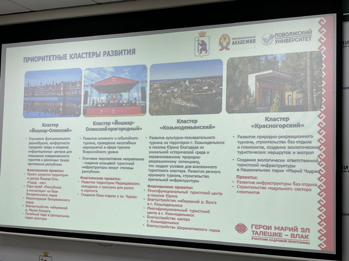В рамках мероприятия были рассмотрены вопросы взаимодействии ассоциации экскурсоводов Республики Марий Эл с органами государственной власти, агентством по развитию туризма и туристским информационным центром г. Йошкар-Олы.