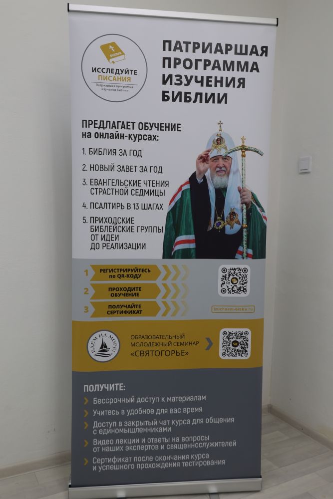 Благочинный Восточного церковного округа, ответственный за распространение Патриаршей программы изучения Библии в Волжской епархии иерей Сергий Алексеев ознакомил собравшихся с Патриаршей программой изучения Библии. На особой обучающей платформе эта программа предлагает бесплатное обучение на следующих онлайн-курсах: «Библия за год», «Новый Завет за год», «Евангельские чтения Страстной седмицы», «Псалтирь в 13 шагах», «Приходские библейские группы: от идеи до реализации». Курсы можно пройти в варианте «слушатель» и варианте «ученик». Последний вариант открывает более широкие возможности, в частности, сертификат после окончания курса и успешного прохождения тестирования.