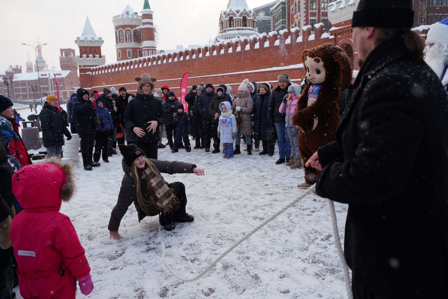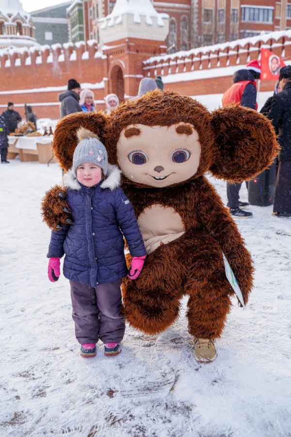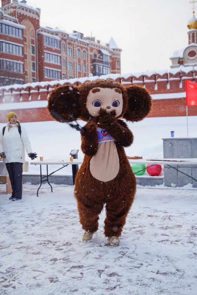 Все желающие могли согреться горячим чаем из самовара с баранками и сладостями, а также сфотографироваться с любимцем детей и взрослых – Чебурашкой.