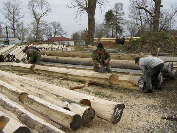 – До зимы надо поднять сруб и покрыть специальным раствором от внешней коррозии, – говорит батюшка Николай, – а зиму под крышей работать будем: купола делать, луковицы, междверные проемы. К весне готовиться.