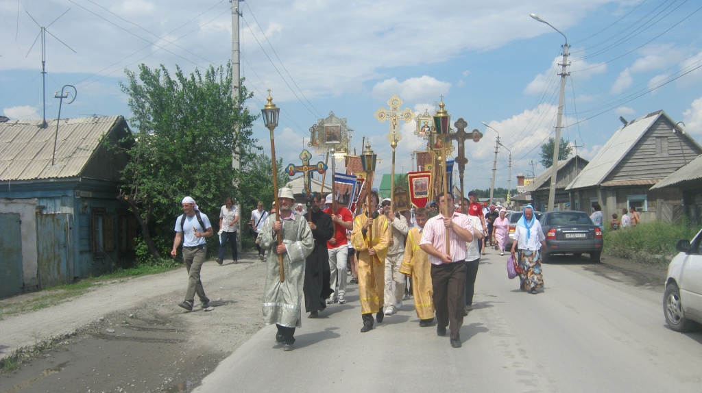 Крестный ход "За духовное возрождение России", посвященный празднику ВСЕХ СВЯТЫХ В ЗЕМЛЕ РОССИЙСКОЙ ПРОСИЯВШИХ прошел от Преображенского собора города Бердска до Святого Источника в м-р Ложок города Искитима. Участие приняли несколько сотен человек. Длина маршрута составила - около 30 км. |